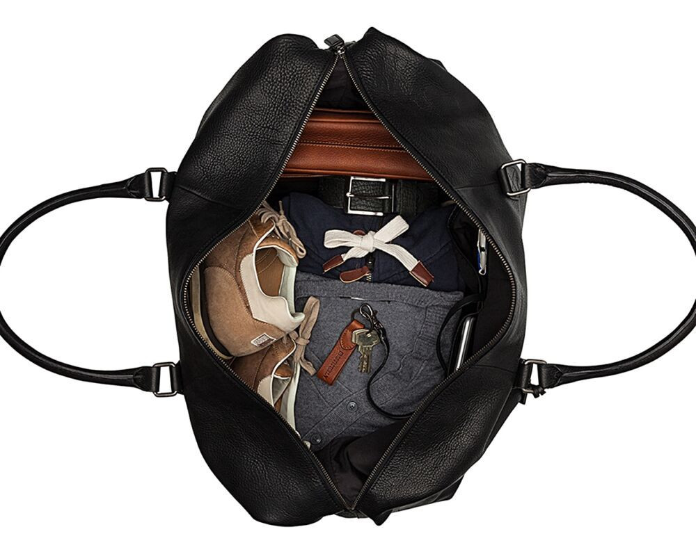 Sportosan elegáns, különleges fazonú, letisztult stílusú bőr utazótáska.