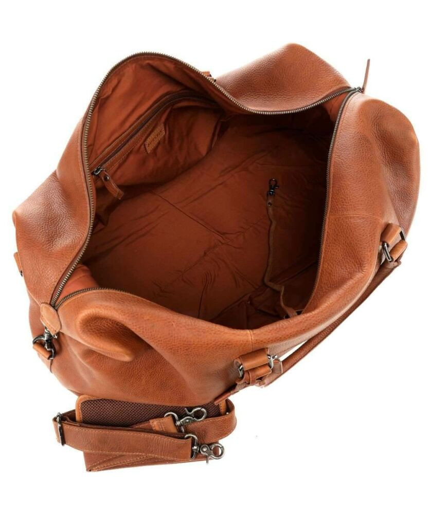 Sportosan elegáns, különleges fazonú, letisztult stílusú bőr utazótáska.