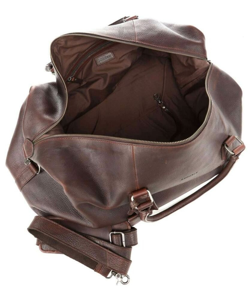 Sportosan elegáns, különleges fazonú, letisztult stílusú bőr utazótáska.