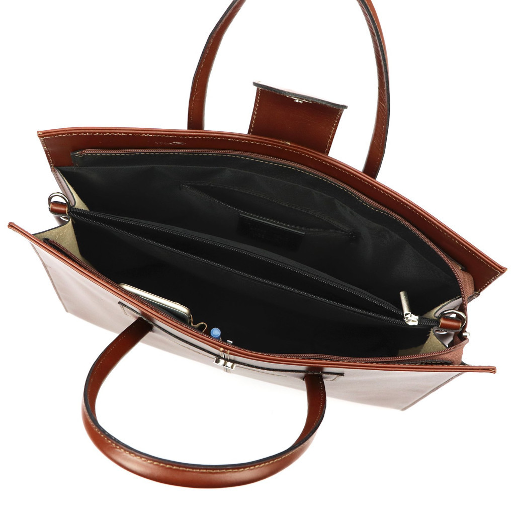 Camilla 778 barna női marhabőr aktatáska 40 × 30 × 10 cmA Camilla 778 elegáns és kifinomult női aktatáska, amely a professzionális megjelenést ötvözi a praktikus funkcionalitással. Kiváló minőségű marhabőrből készült, így tartós, időtálló és prémium érzetű. Klasszikus barna színe meleg, nőies és stílusos megjelenést biztosít. Merev oldalfalai stabil tartást adnak, így a benne tárolt iratok, eszközök és okoseszközök mindig rendezettek és biztonságban maradnak. A táska átgondolt belső elrendezése lehetővé teszi, hogy könnyedén rendszerezze mindennapi kellékeit – legyen szó dokumentumokról, jegyzetfüzetről, tabletről vagy egyéb technikai kiegészítőkről.A cipzáros, merev válaszfal két részre osztja a fő rekeszt, így még könnyebben kialakítható egy áttekinthető, logikus pakolási rendszer. A belső nyitott zsebek és tolltartók gondoskodnak arról, hogy a kisebb kiegészítők is mindig kéznél legyenek.Paraméterek:Méret: 40 × 30 × 10 cmAnyag: marhabőrSzín: barnaMerev oldalfalak a stabil tartásértCipzáros, merev válaszfal a két részre osztott fő rekeszhezBelső nyitott zsebekTolltartókOkoseszközök számára is alkalmas tárolófelületVálassza a barna Camilla 778 aktatáskát, és élvezze a stílus, rendezettség és modern praktikum tökéletes összhangját minden nap!