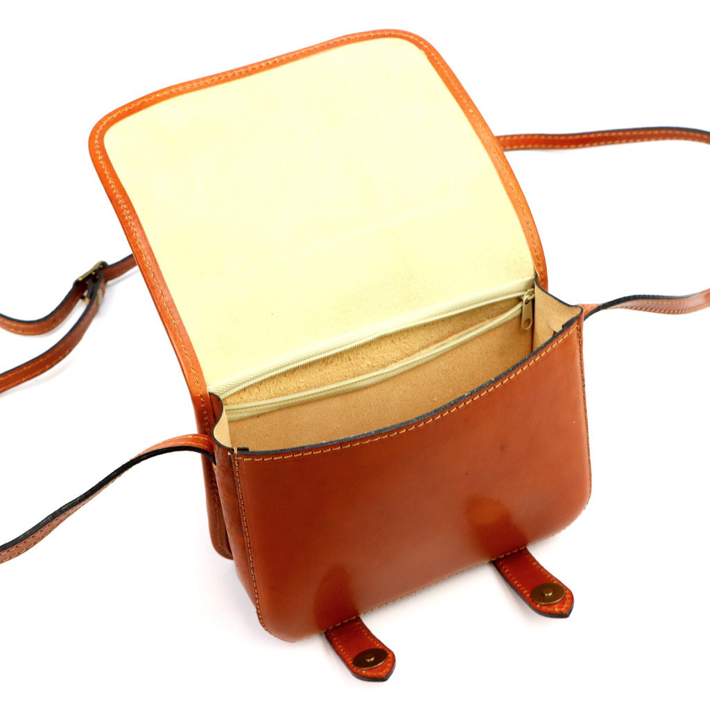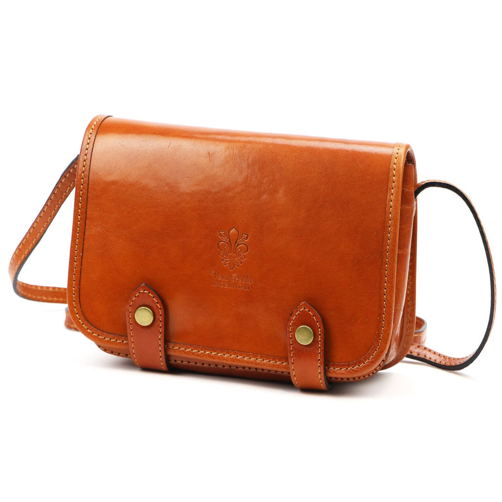 Termékjellemzők• Modellkód: Florence 58• Szín: konyakbarna• Méret: 20 × 15 × 7 cm• Anyag: olasz prémium marhabőr• Záródás: lehajtható patentos fedél• Kiosztás: 1 rekesz• Belső rész: cipzáras belső zseb• Pánt / Fül: vékony, állítható oldaltáska pánt