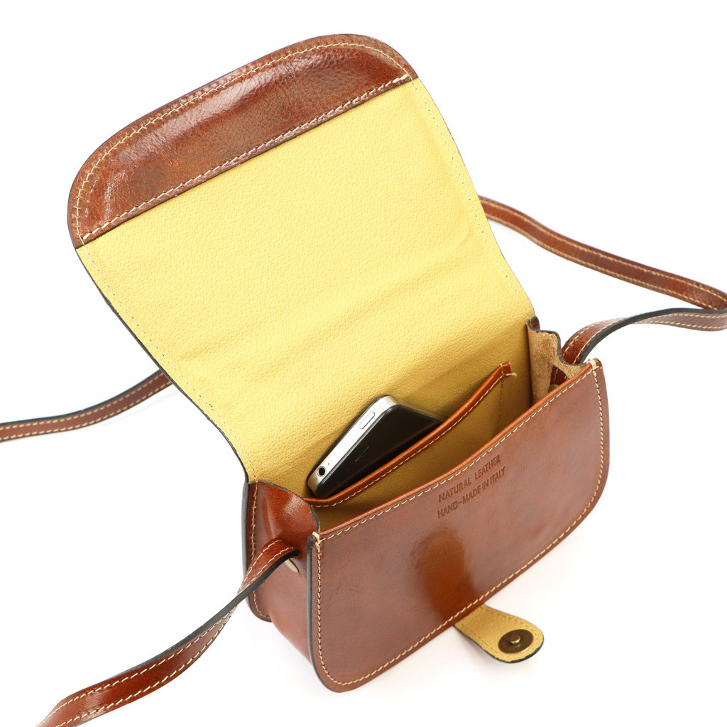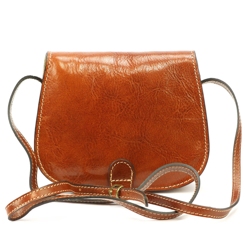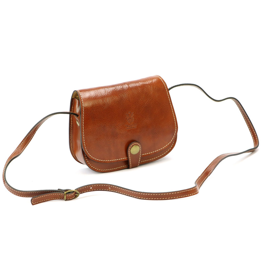 A Florence ART. 882 konyakbarna női bőr válltáska, oldaltáska 19 x 15 x 7 cm egy vadásztáska stílusú, klasszikusan elegáns bőr válltáska, amely a természetes anyagok és az időtálló dizájn tökéletes ötvözete.