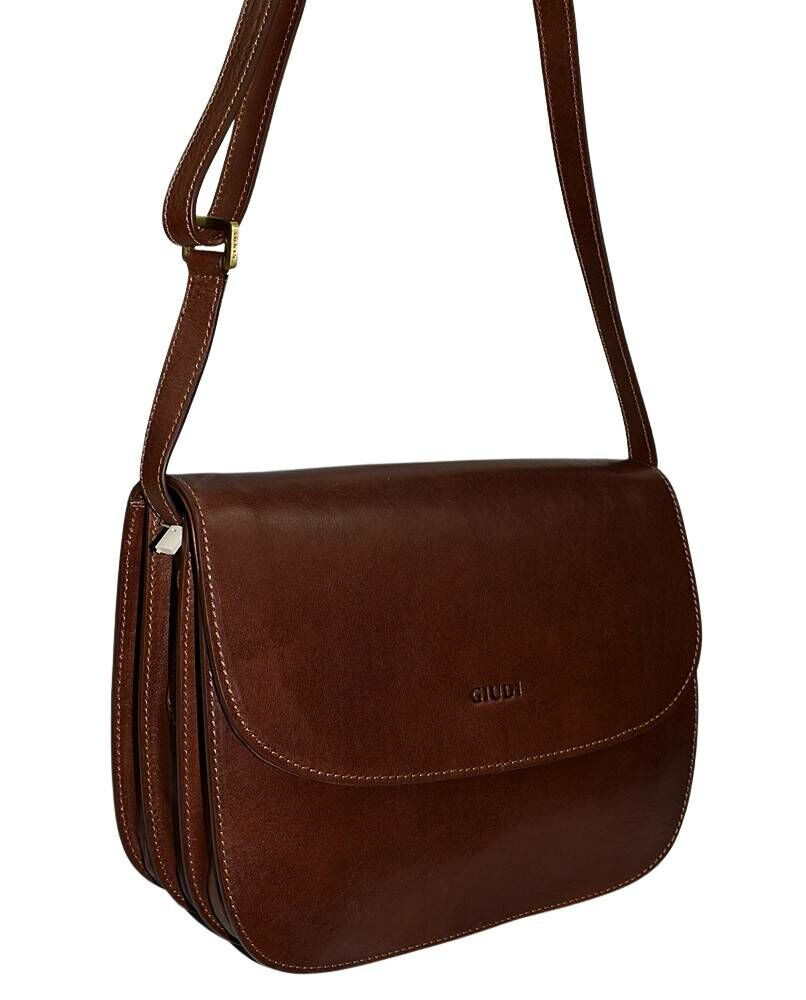 Giudi női bőr válltáska minőségi, selyemfényű marhabőrből, Olaszországban, kézzel készítetett klasszikus női bőrtáska. Elegáns, letisztult megjelenésű, GIUDI nyomott logóval, arany kiégészítőkkel és díszvarrásokkal.