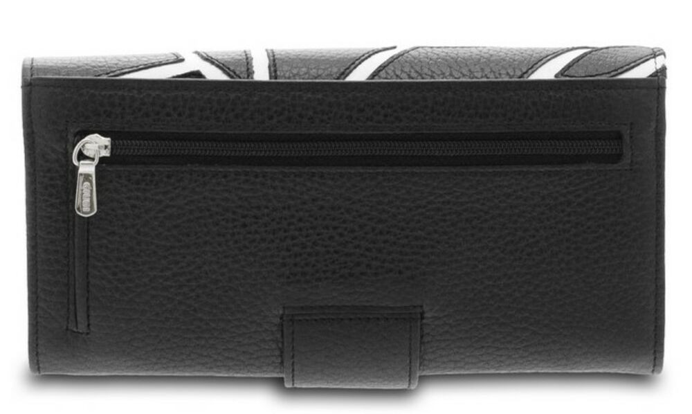 A pénztárcában 1 cipzáras aprópénztartó és 2 papírpénztartó került elhelyezésre, melyekben 3-3 kártya- és irattartót is találunk. Mindezeken felül két nyitott zseb is kialakításra került, melyben akár kisebb értékek tárolására is lehetőség nyílik. A pénztárca patenttal zárható felén további 4 kártya- és irattartót találunk, még a hátulsó felén egy cipzárral zárható és egy nyitott zsebet egyaránt.
