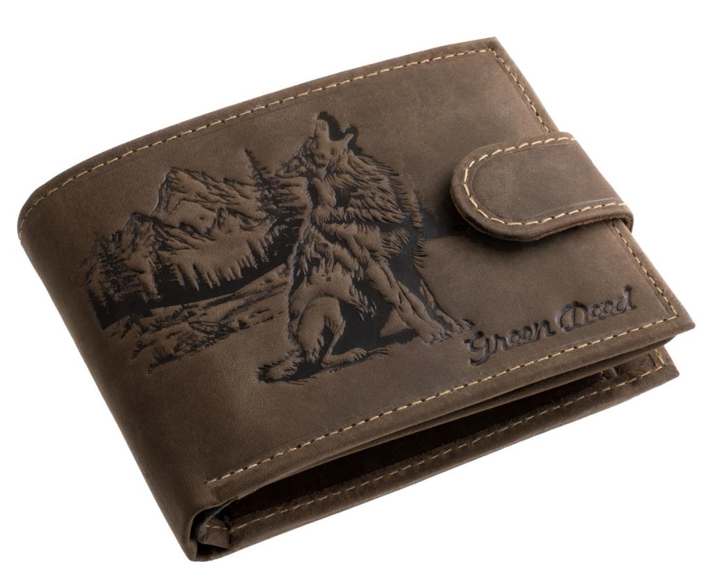 Ez a GreenDeed márkájú férfi pénztárca markáns megjelenésével és egyedi részleteivel kitűnik a hétköznapi modellek közül. A pénztárca fedelén nyomott farkas motívum látható, amely erőt és karaktert sugároz, így kiváló választás mindazoknak, akik szeretik a természet közeli, vagány stílust. Átfogópántos kialakítása biztosítja a tartalom zárhatóságát és biztonságát, miközben a valódi bőr anyag időtálló használatot és igényes megjelenést garantál.