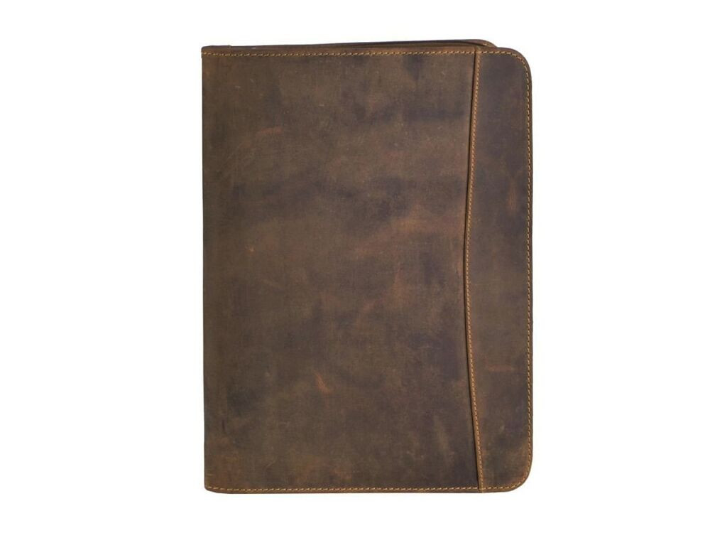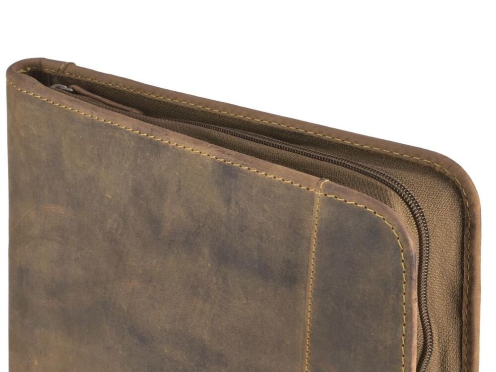Koptatott marhabőrből készült igényes irattartó, mely cipzárral záródik.