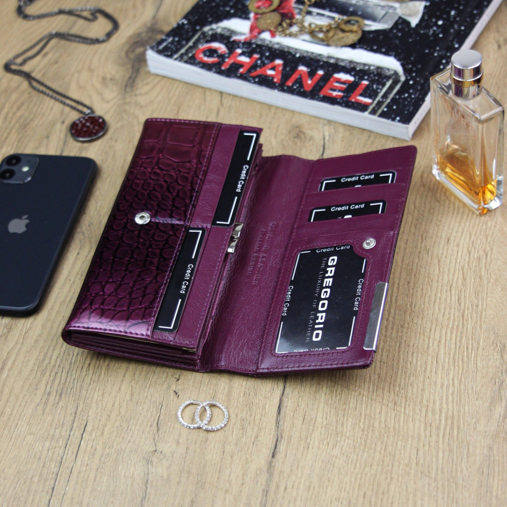 A Gregorio BC-100 magenta lakkbőr női pénztárca ideális választás azok számára, akik szeretnék kiemelni egyediségüket és eleganciájukat. A magenta szín energikus, nőies és figyelemfelkeltő, miközben a prémium minőségű valódi bőrből készült pénztárca elegáns megjelenést és hosszú élettartamot biztosít.
