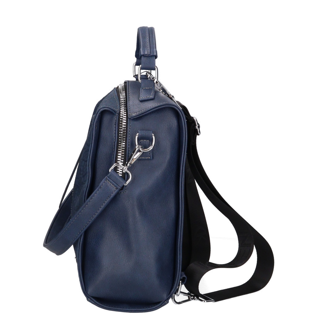 Paraméterek:• Méret: 26 × 32 × 15 cm• Vállpánt hossza: állítható• Alapanyag: rostbőr• Szín: kék• Elején díszcipzár, hátul cipzáras zseb