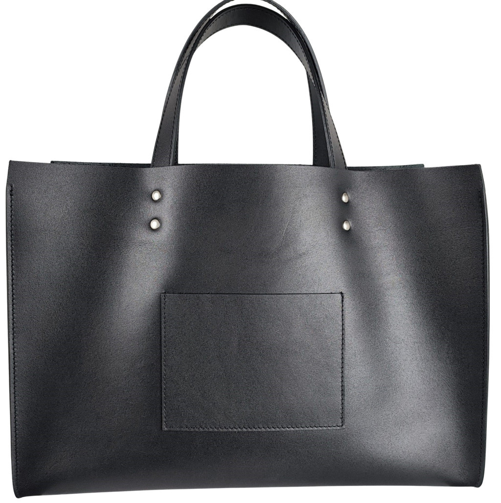 Béleletlen, nagyméretű egyterű női bőr shopper.