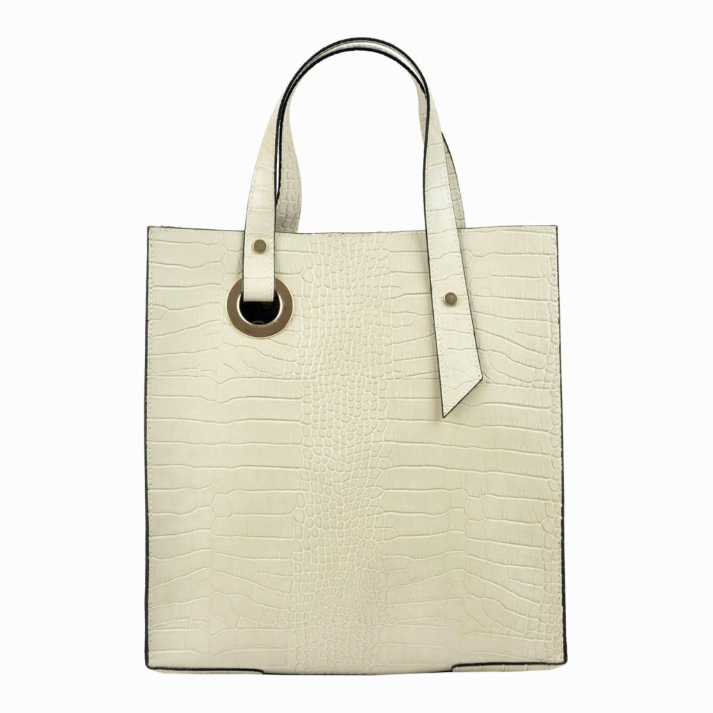 A Luka 19-15 COCO egy elegáns és kifinomult női bőr kézitáska, amely kiváló minőségű natúr bőrből készült, és krokodilbőr mintázatú domborítással rendelkezik. Ez az exkluzív textúra egyedi és luxus megjelenést kölcsönöz a táskának, így stílusos kiegészítője lehet bármilyen elegáns vagy üzleti öltözetnek.