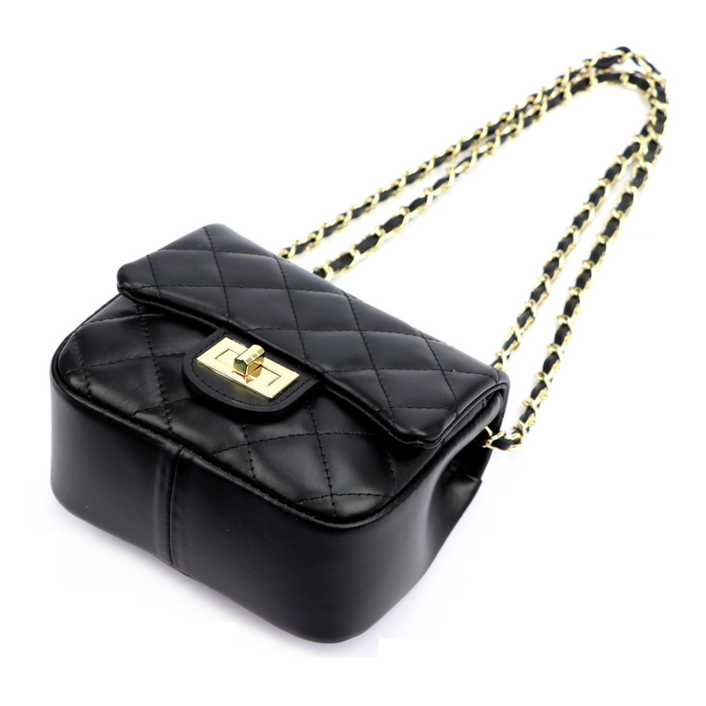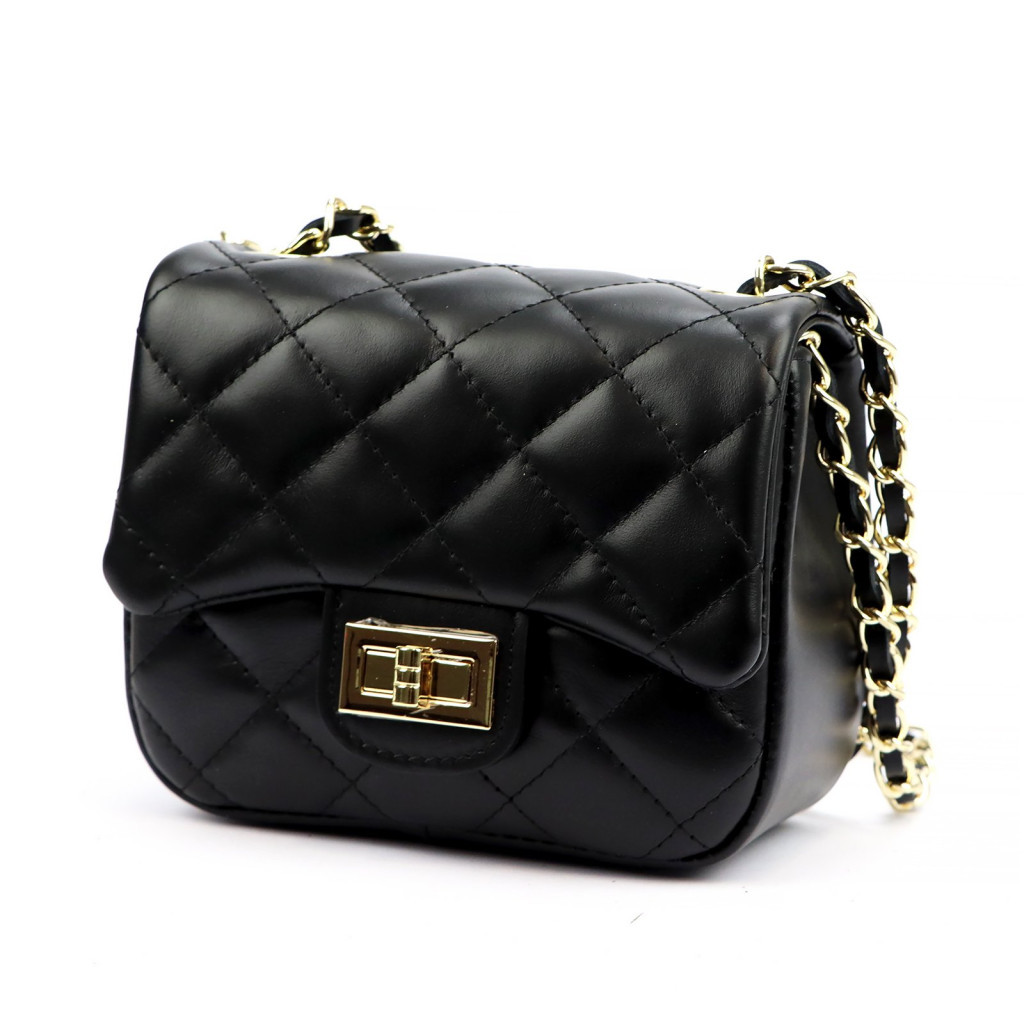 Főbb jellemzők:• Márka: Luka• Típus: 25-066• Szín: fekete – klasszikus, univerzális árnyalat• Anyag: prémium olasz bőr• Méret: 17 x 14,5 x 10 cm – kompakt kialakítás• Záródás: forgócsatos kivitel• Pánt: láncos vállpánt