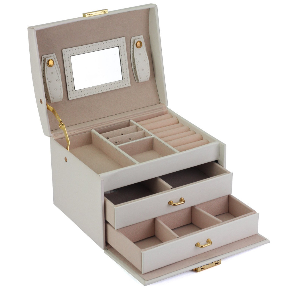 Ez az ekrü színű ékszerdoboz tökéletes választás, ha szeretnéd stílusosan tárolni és bemutatni ékszereidet, legyen szó napi használatról vagy különleges alkalmakról.