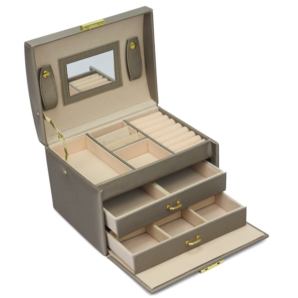 A PATRIZIA keki szinű dupla fiókos ékszerdoboz elegáns és praktikus megoldás a legbecsesebb ékszereid tárolására.