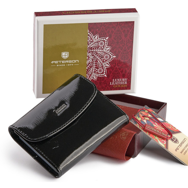 Peterson fekete női lakk bőr kártyatartó 10,5×8,5 cm
