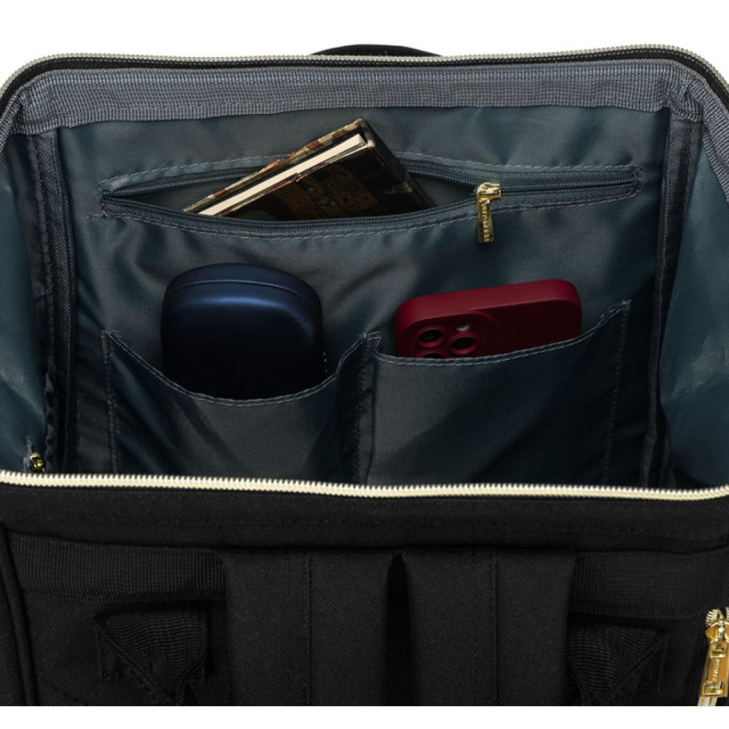 A Peterson ALFA BLACK hátizsák tökéletes választás azok számára, akik szeretik ötvözni az eleganciát a praktikummal. Letisztult, fekete színe és arany színű fém kiegészítői kifinomult, mégis modern megjelenést kölcsönöznek, így ideális üzleti, városi vagy akár hétköznapi viselethez is.