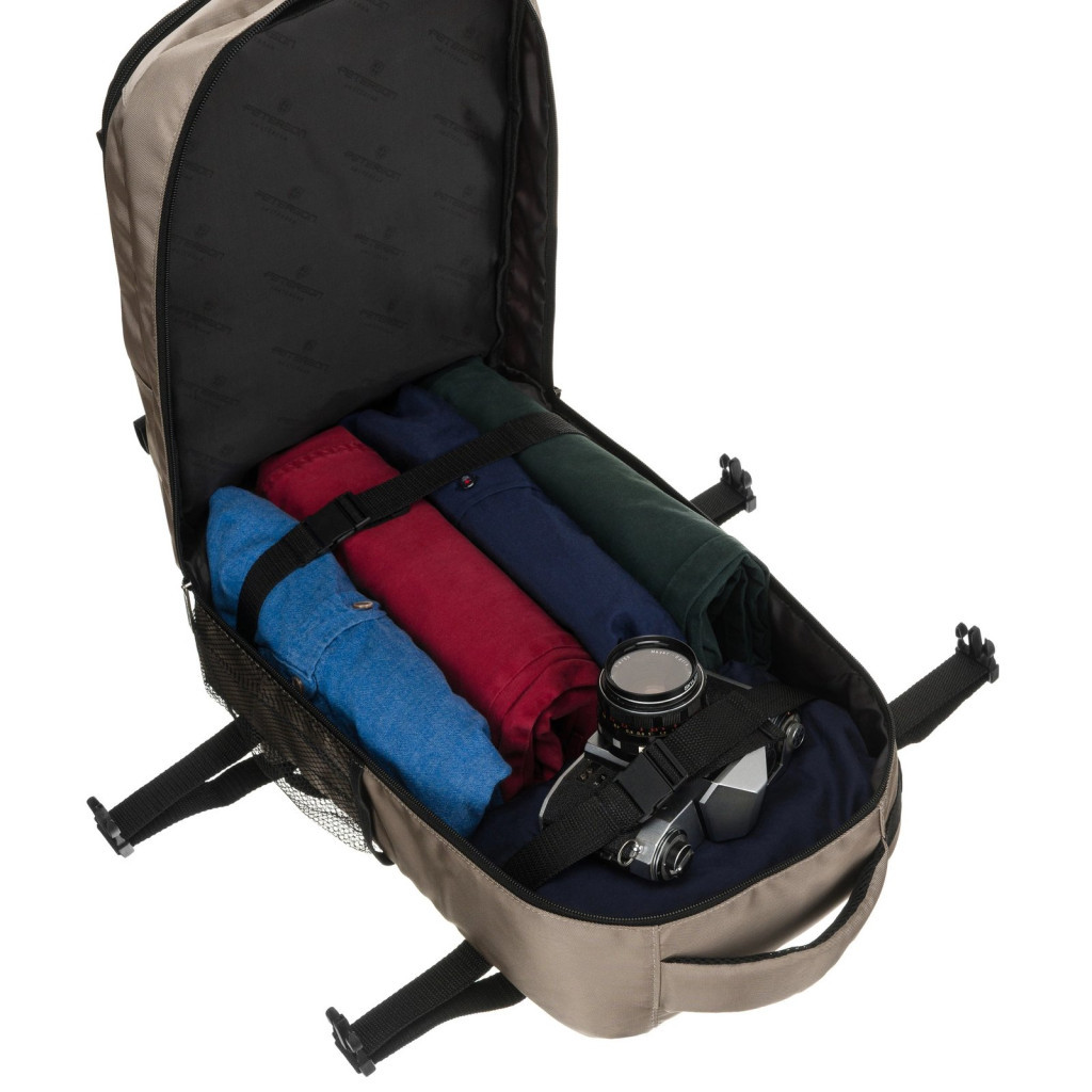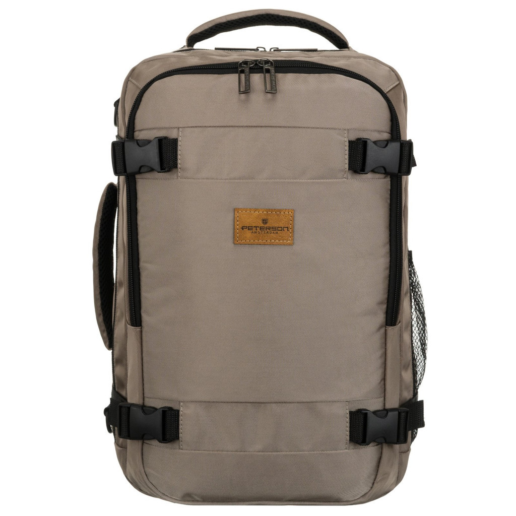 A Peterson Ptn Bielik-6508 szürke hátizsák kifinomult és funkcionális alternatíva rövid utazásokhoz. Kompakt kialakítása révén megfelel a legtöbb légitársaság kézipoggyász-szabályainak, így pluszköltség nélkül felvihető a fedélzetre többek között a WizzAir és a Ryanair járataira is. A nagyra nyitható fő rekesz szinte bőröndként pakolható, a beépített rögzítőpántok pedig gondoskodnak arról, hogy a ruhák utazás közben is stabilan a helyükön maradjanak.A második rekesz átgondolt tárolómegoldásokat kínál: található benne nyitott rekesz tablet vagy iratok számára, három cipzáras hálós zseb kisebb kiegészítőknek, valamint egy praktikus tolltartó. Az oldalsó rugalmas hálós zseb tökéletes palack vagy esernyő tárolására.A lélegző 3D mesh hátrész, a párnázott vállpántok és az oldalsó kompressziós pántok extra kényelmet és biztos tartást nyújtanak. A bőröndre rögzíthető hátsó pánt, a két fogantyú, valamint a hosszú vállpánt lehetővé teszi, hogy a táskát többféle módon viseld: hátizsákként, vállon hordható táskaként vagy akár sporttáskaként is.Termékjellemzők• Méretek: 40 × 25 × 20 cm• Anyag: poliészter• Szín: szürke• Maximális hevederhossz: 85 cm• Maximális vállpánt hossz: 127 cm• Tágas fő rekesz rögzítőpántokkal• Második rekesz rendszerező zsebekkel és tolltartóval• 3 cipzáras hálós zseb• Oldalsó rugalmas hálós zseb palacknak vagy esernyőnek• Oldalsó kompressziós pántok• Légáteresztő 3D hálós hátrész és vállpántok• Bőröndre rögzíthető pánt• Két párnázott fogantyú (felső és oldalsó)• Hosszú, állítható pánt – vállon hordható táskaként is használható