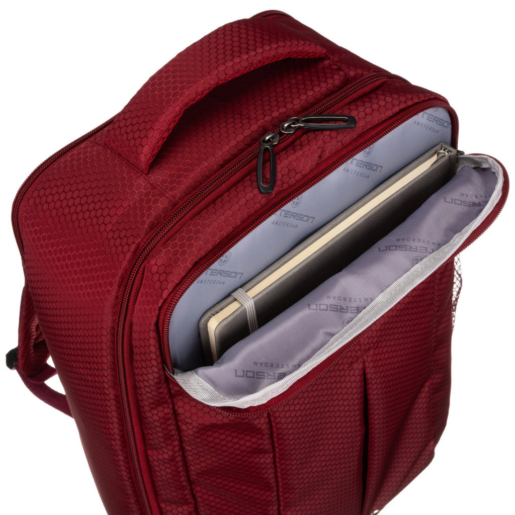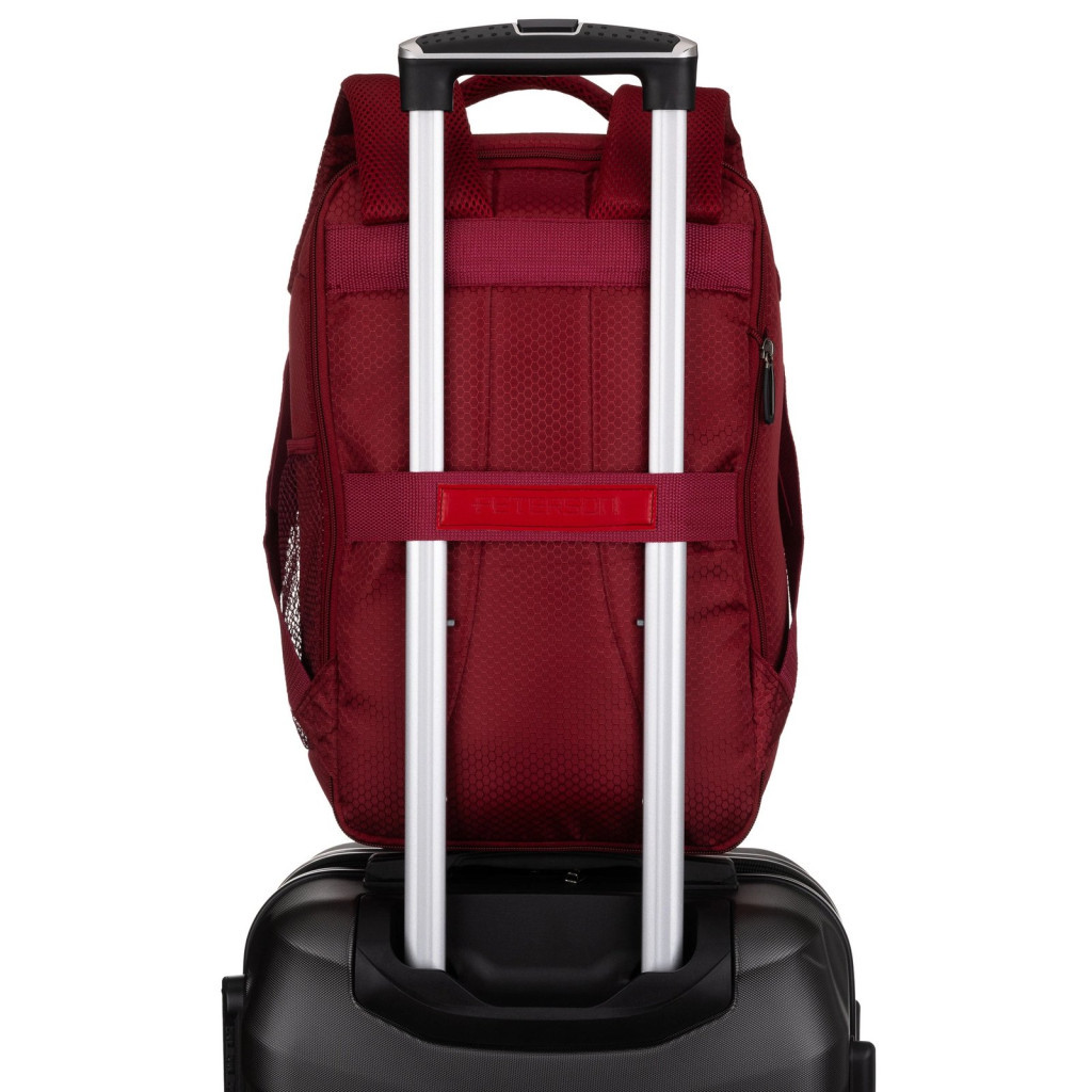 Peterson BOCIAN bordó poliészter hátizsák – a stílusos utazás elengedhetetlen kellékeA Peterson BOCIAN bordó hátizsák a kényelmes és rendezett utazás tökéletes társa. Praktikus méretének köszönhetően fedélzeti kézipoggyászként is felvihető a repülőre, így a legfontosabb dolgaid mindig veled lehetnek az utazás során. A bordó szín elegáns, modern és karakteres megjelenést biztosít, amely egyszerre sportos és figyelemfelkeltő, miközben több rekesze és zsebe segít abban, hogy minden holmid átláthatóan és rendezetten elférjen.A strapabíró poliészter anyag hosszú távú használatra tervezett, legyen szó üzleti útról vagy hétvégi kiruccanásról. A táska belsejében ruha leszorító csattok gondoskodnak arról, hogy ruháid a helyükön maradjanak és ne gyűrődjenek össze. A külső hátoldalon található bőröndre húzható pánt megkönnyíti a közlekedést, így a hátizsák egyszerűen és biztonságosan rögzíthető a gurulós bőröndöd fogantyújára.Termékjellemzők:Anyag: poliészterSzín: bordóMéretek: 25 × 40 × 20 cmKialakítás: több rekesz a rendszerezett tároláshozFunkciók: ruha leszorító csattok, bőröndre húzható pántKézipoggyász méret: repülőre felvihetőA Peterson BOCIAN bordó hátizsák a praktikum, a kényelem és az elegáns megjelenés tökéletes egyensúlyát kínálja – minden utazás során megbízható társad lesz.Válaszd a Peterson BOCIAN bordó hátizsákot, és élvezd az utazás szabadságát stílusosan és rendezetten!Rendeld meg most, és indulj útnak a tökéletes fedélzeti táskával!
