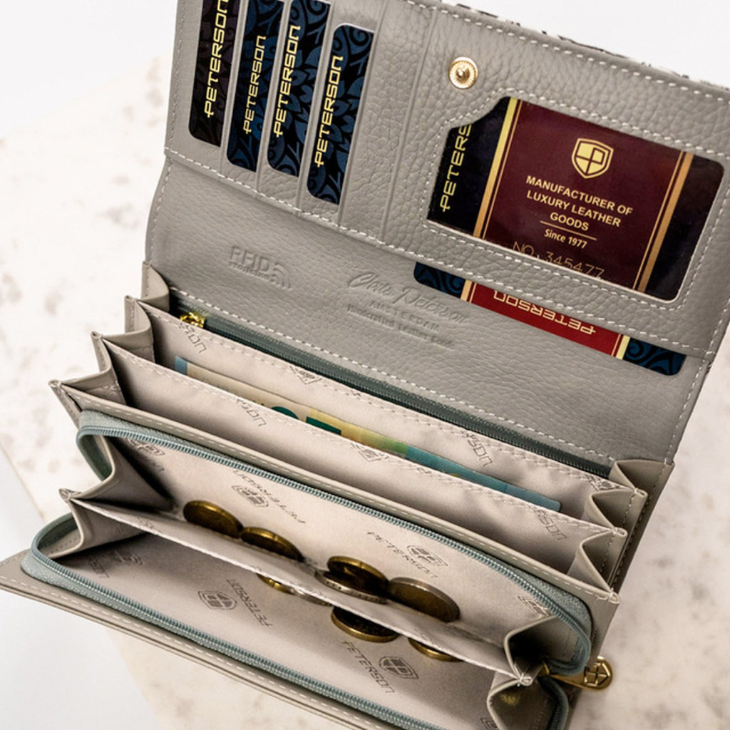 A Peterson PTN PH20-LFL fekete női pénztárca tökéletes választás mindazok számára, akik egy megbízható, stílusos és jól kihasználható pénztárcát keresnek – kompromisszumok nélkül.