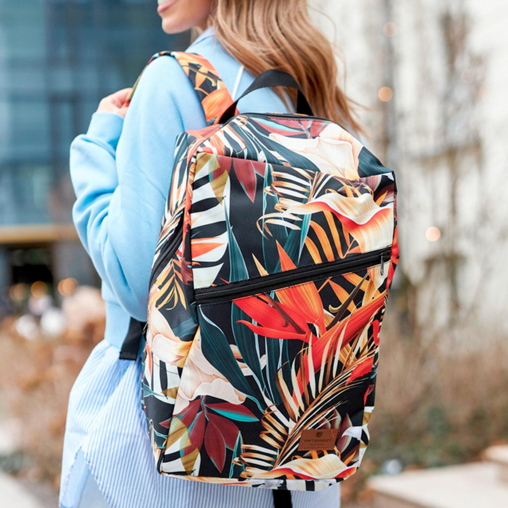 A Peterson PTN PLEC-01 virág mintás hátizsák egy praktikus és stílusos választás utazáshoz, hiszen megfelel a Wizz Air és Ryanair kézipoggyász méreteinek, így gond nélkül felvihető a fedélzetre. Tartós poliészter anyagból készült, amely könnyen tisztítható és hosszú élettartamot biztosít. Egyrekeszes kialakítású, belső cipzáras zsebbel és mobiltartóval a kisebb tárgyak rendszerezett tárolásához. Az elülső cipzáras külső zseb gyors hozzáférést biztosít a legfontosabb dolgokhoz. Emellett a táska bőrönd fogantyújára fűzhető, és kézi fogóval is rendelkezik, ami még kényelmesebbé teszi az utazást.