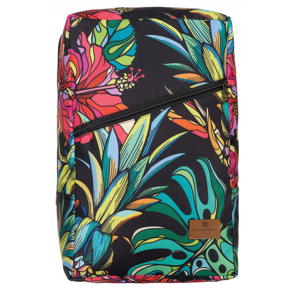 A Peterson PTN PLEC-04 virág mintás hátizsák egy praktikus és stílusos választás utazáshoz, hiszen megfelel a Wizz Air és Ryanair kézipoggyász méreteinek, így gond nélkül felvihető a fedélzetre. Tartós poliészter anyagból készült, amely könnyen tisztítható és hosszú élettartamot biztosít. Egyrekeszes kialakítású, belső cipzáras zsebbel és mobiltartóval a kisebb tárgyak rendszerezett tárolásához. Az elülső cipzáras külső zseb gyors hozzáférést biztosít a legfontosabb dolgokhoz. Emellett a táska bőrönd fogantyújára fűzhető, és kézi fogóval is rendelkezik, ami még kényelmesebbé teszi az utazást.