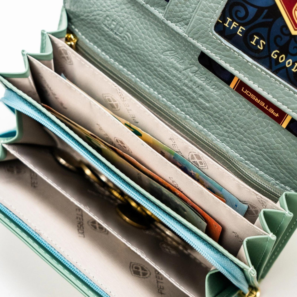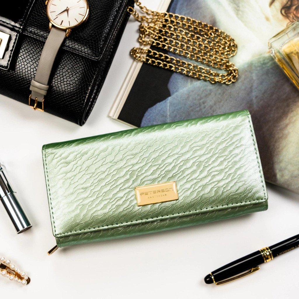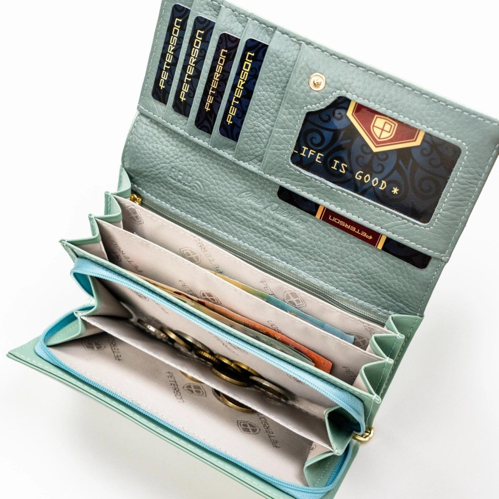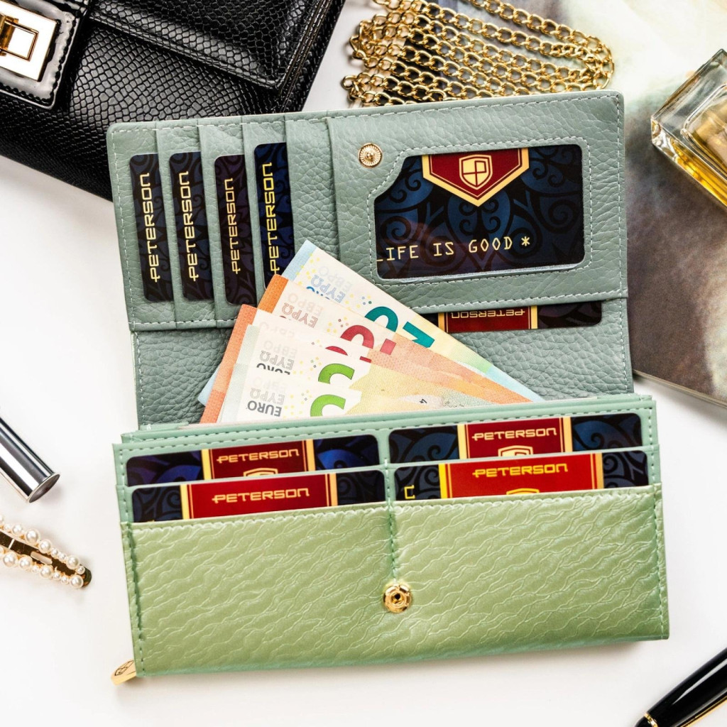 A Peterson PTN PX20-CNF zöld női pénztárca 18,5 x 9 x 3,5 cm ideális választás azoknak a nőknek, akik egy tágas, elegáns és jól rendszerezhető pénztárcát keresnek különleges és természetes színvilággal.