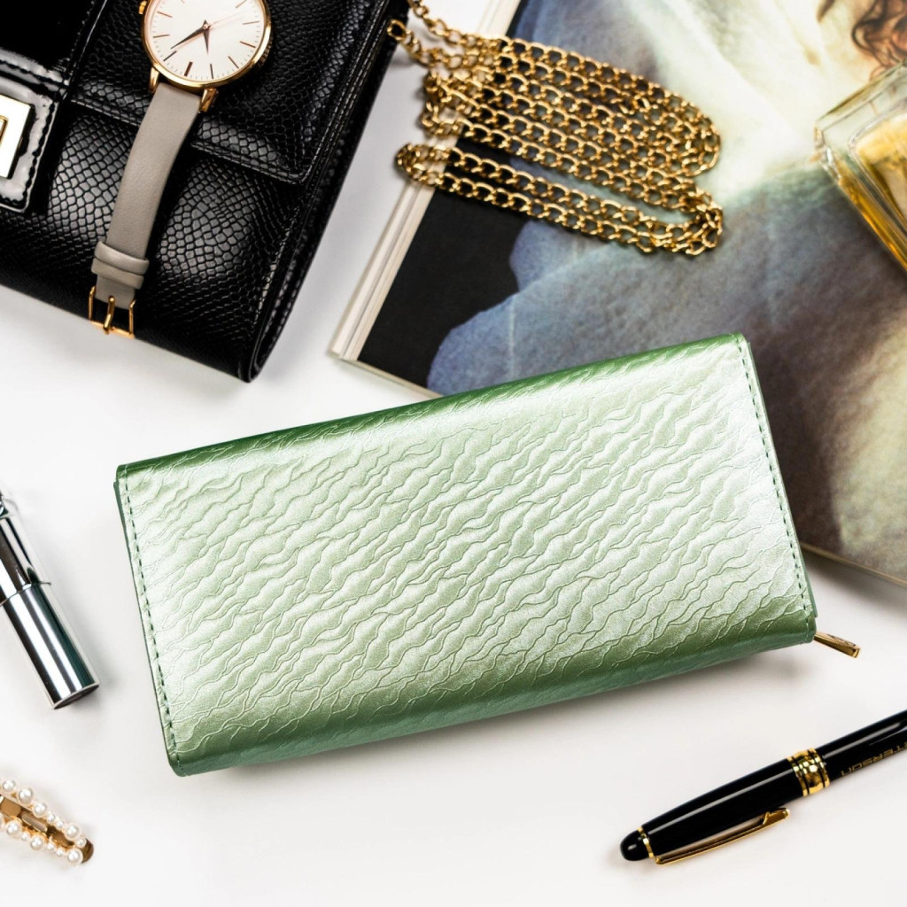TermékleírásA Peterson PTN PX20-CNF zöld női pénztárca 18,5 x 9 x 3,5 cm elegáns és tágas kialakítású női pénztárca, amely a praktikusságot modern, természetközeli megjelenéssel ötvözi. A zöld szín friss, harmonikus és különleges hatást kelt, miközben a nagyobb méret kiváló rendszerezhetőséget biztosít a mindennapokban.