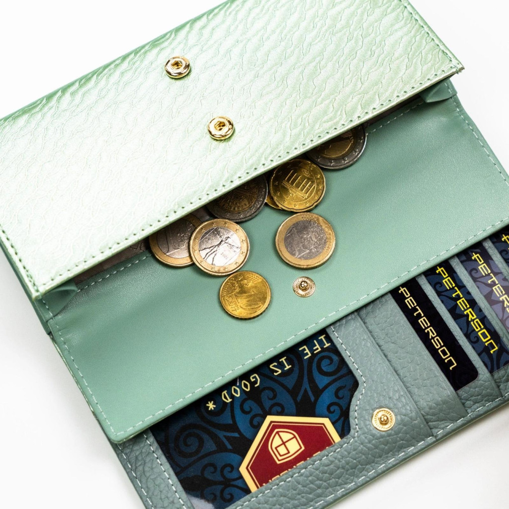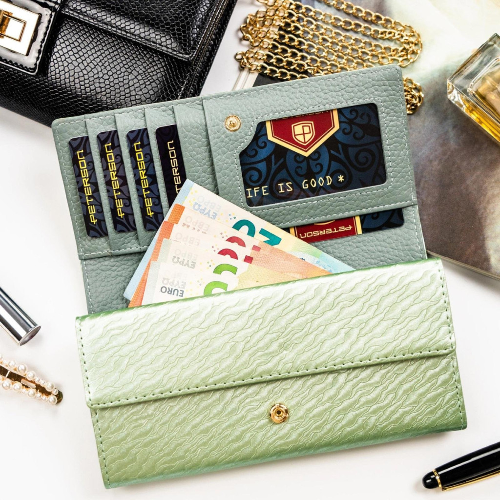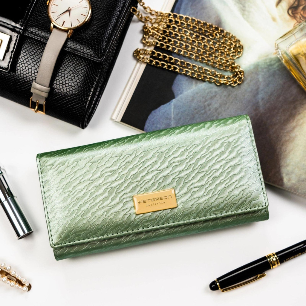 A Peterson PTN PX22-CNF zöld női pénztárca 18,5 x 9 x 3,5 cm ideális választás azoknak a nőknek, akik egy tágas, elegáns és jól rendszerezhető pénztárcát keresnek különleges, természetes színvilággal.