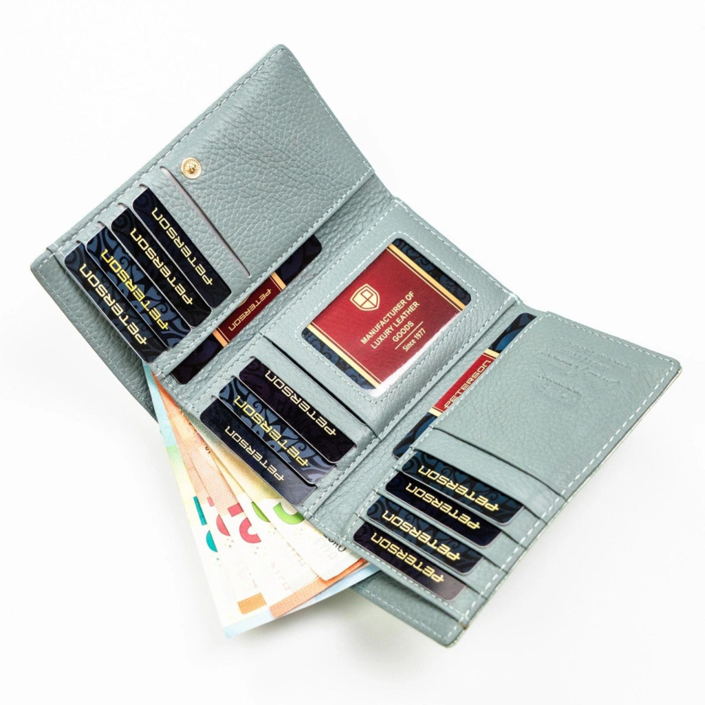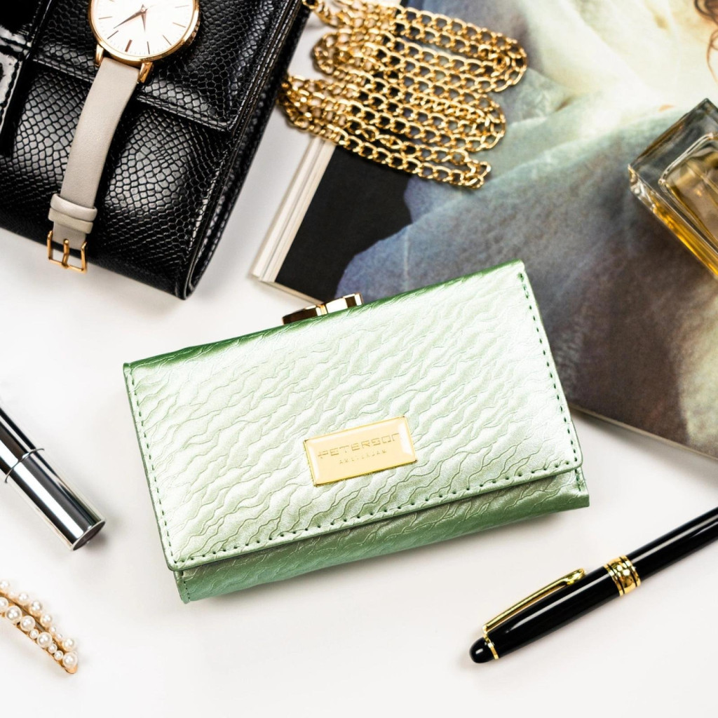 A Peterson PTN PX23-CNF zöld női pénztárca 16 x 9 x 3 cm ideális választás azoknak a nőknek, akik egy kompakt, mégis jól pakolható és stílusos pénztárcát keresnek természetes, különleges színvilággal.