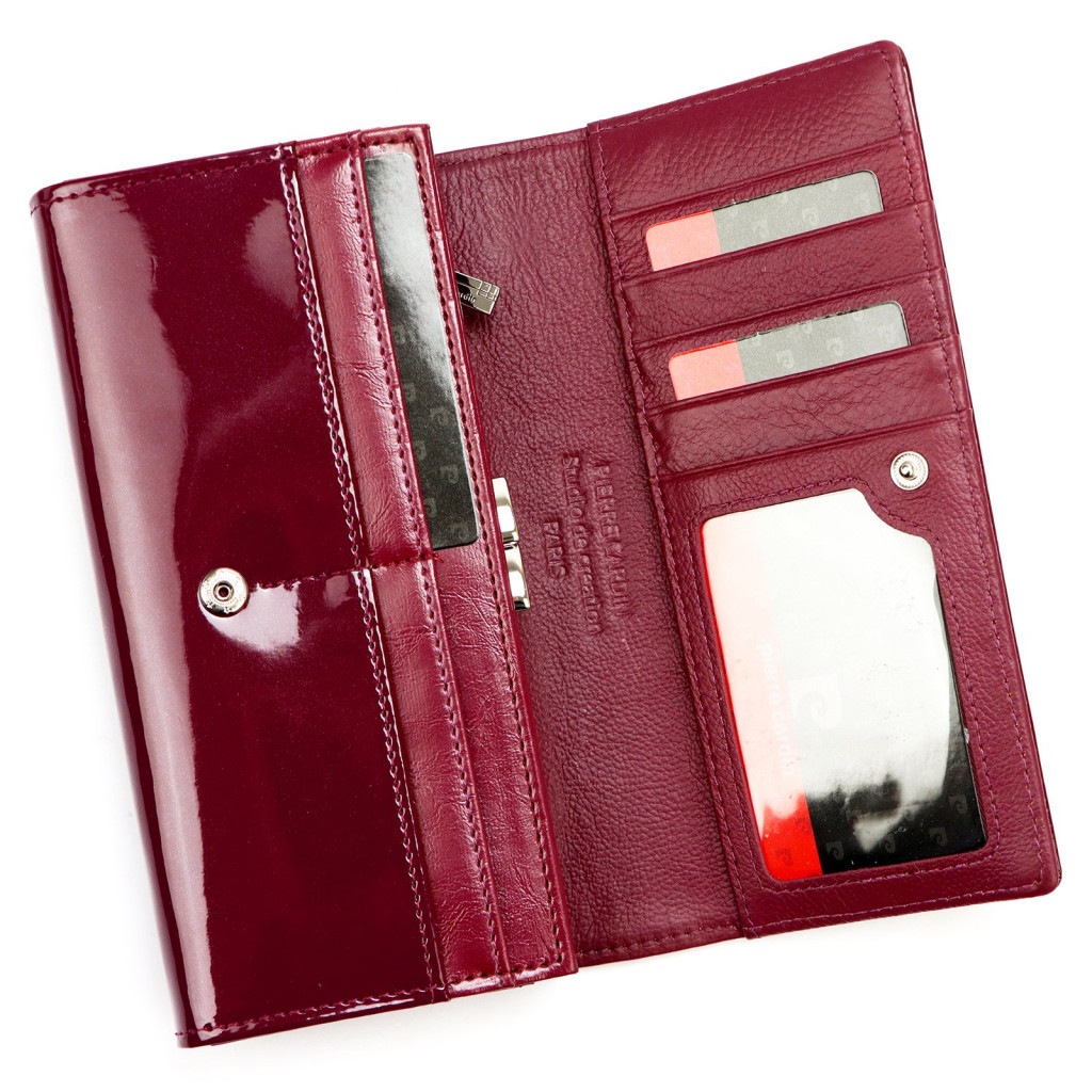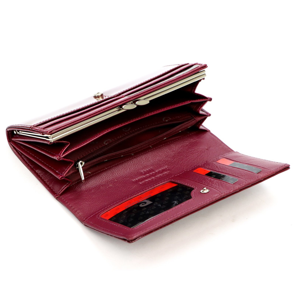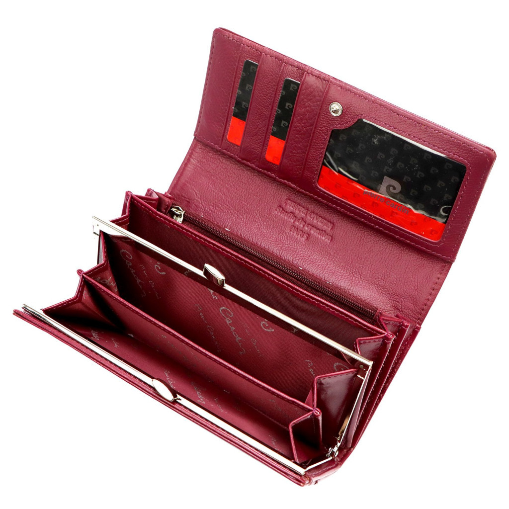Pierre Cardin 07 SHINY 100 bíbor színű női bőr-rostbőr pénztárca 18,5 x 10 cm