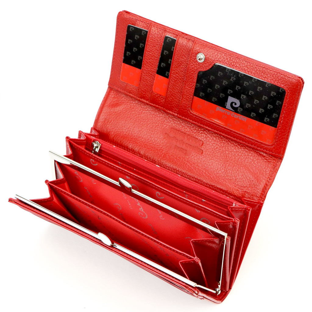 Pierre Cardin 07 SHINY 100 piros női rostbőr-bőr pénztárca 18,5 x 10 cm