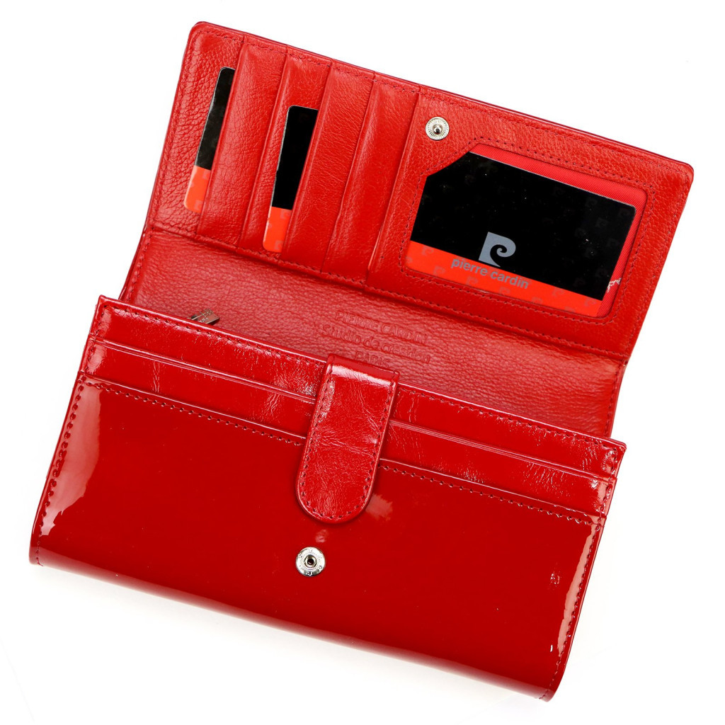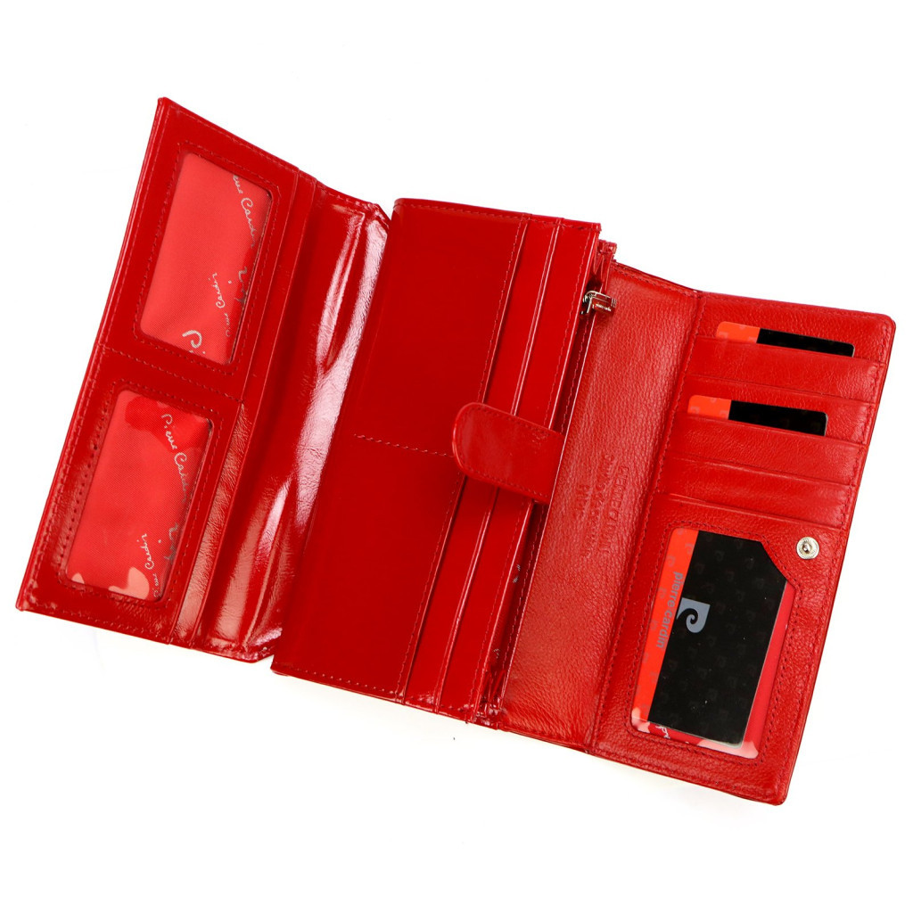 Pierre Cardin 07 SHINY 102 piros női rostbőr-bőr pénztárca 18,5 x 10,5 cm