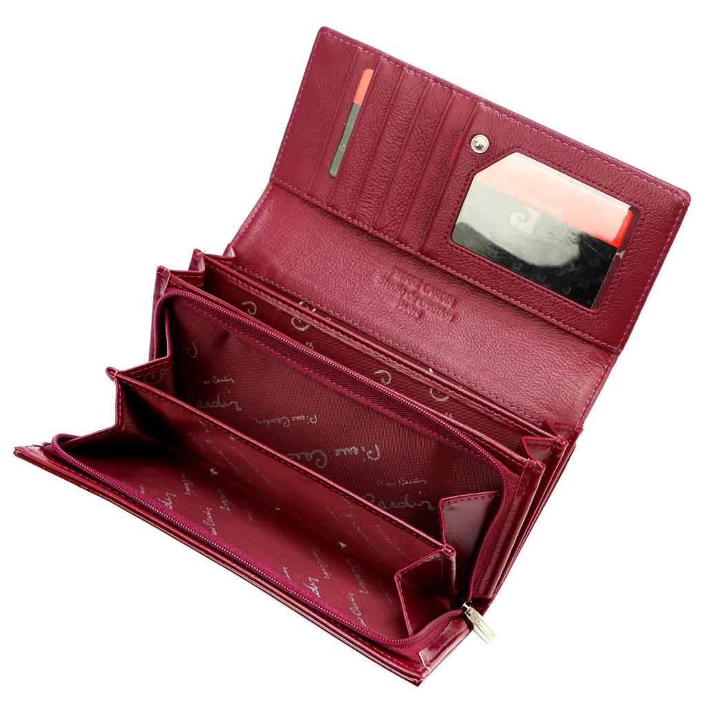 Pierre Cardin 07 SHINY 121 bordó női bőr-rostbőr pénztárca 19,5 x 10 cm