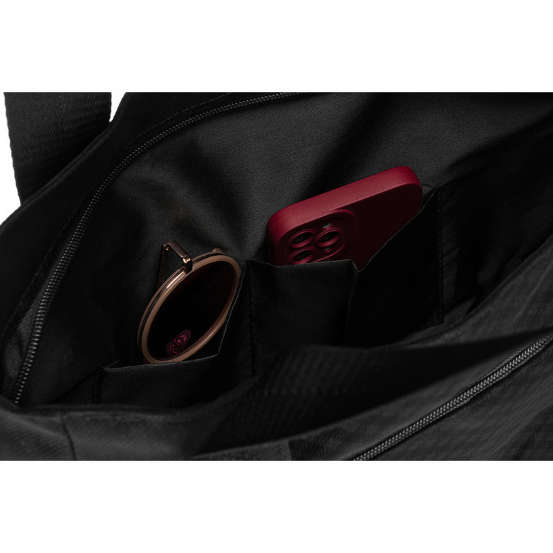 A 30 x 28 x 15 cm-es táska A4-es formátumú dokumentumokat is kényelmesen elnyel. A gondosan kialakított belső térben egy nagy cipzáras fő rekesz található, benne egy cipzáras zsebbel és két nyitott tárolórekesszel. A táska elején és hátulján is található egy-egy cipzáras külső zseb, míg két oldalsó nyitott zseb ideális palack vagy kulacs tárolására.