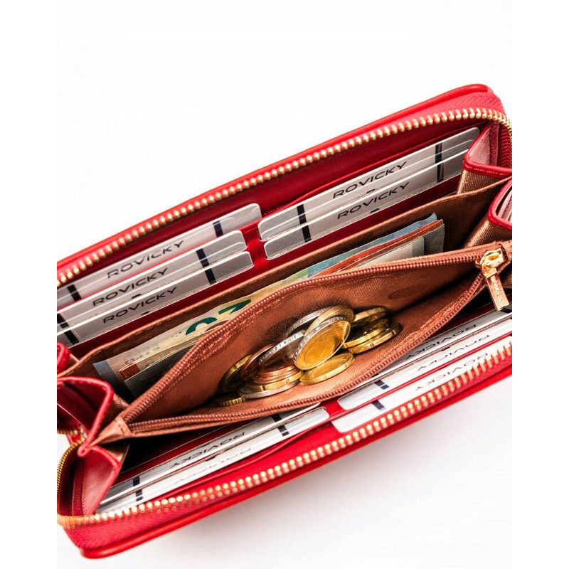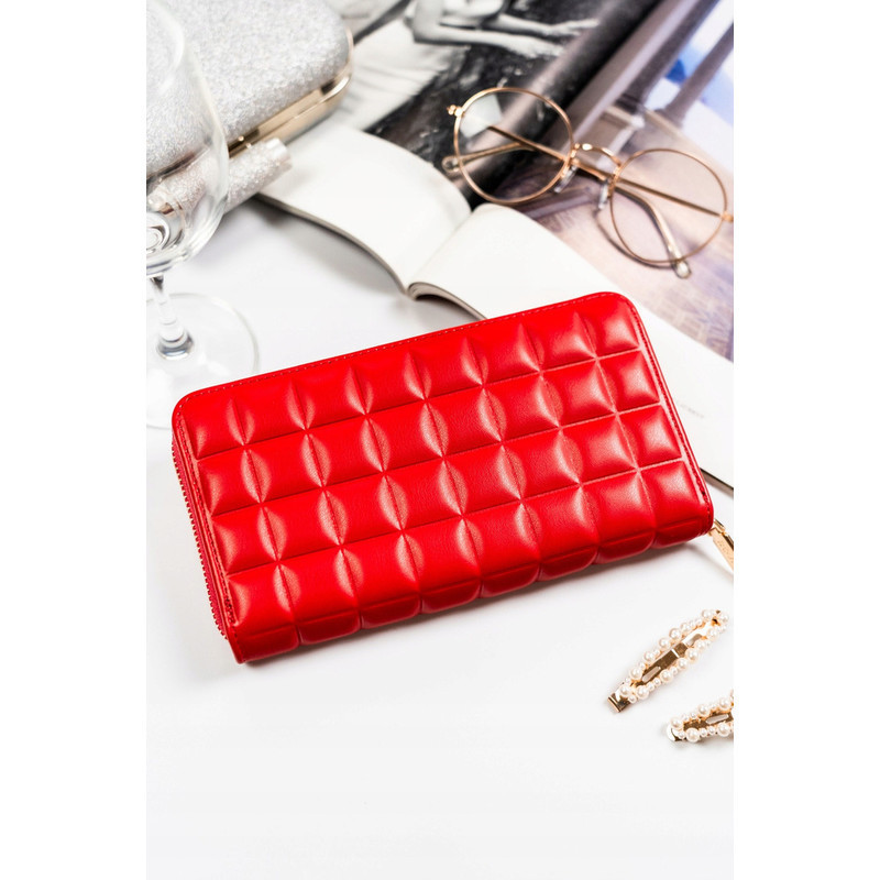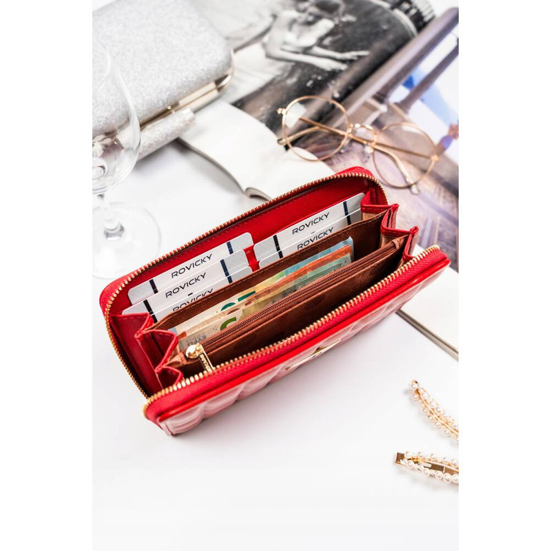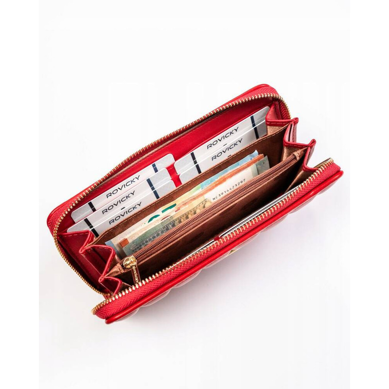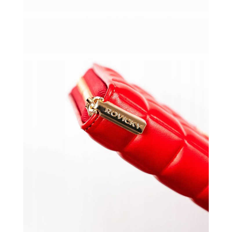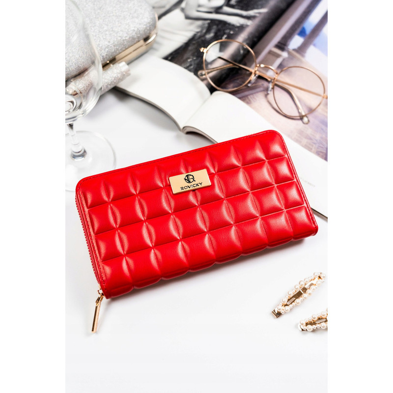 Ökológiai bőrből készült piros női pénztárca steppelt panellel - Rovicky