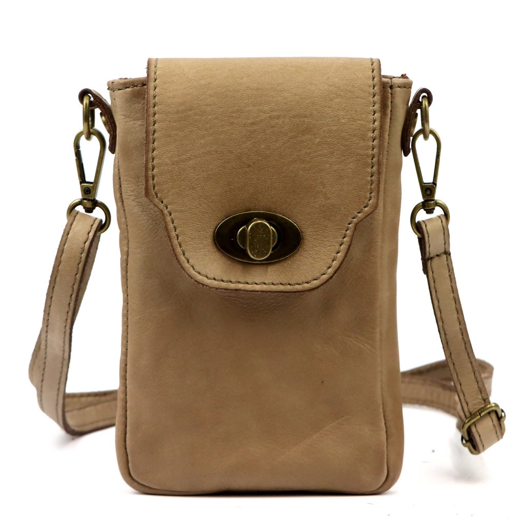 VS 045 Drapp Női Bőr Válltáska, Mobiltartó – Kompakt Elegancia, Praktikus Kialakítás