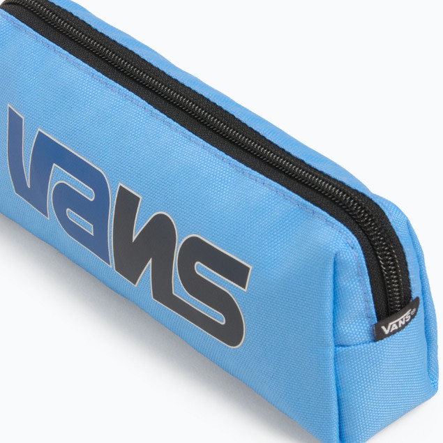 A Vans Old Skool kék tolltartó fiatalos és praktikus kiegészítő, amely tökéletes választás iskolába vagy mindennapi használatra. Világoskék színét a nagyméretű Vans logónyomat teszi igazán látványossá, így stílusos darabként illik bármelyik iskolatáskádhoz. A cipzáros záródásnak köszönhetően könnyen nyitható és zárható, belsejében pedig egy nagy rekesz található, amely elegendő helyet biztosít ceruzáknak, színeseknek, filceknek, ollónak vagy akár vonalzónak is.