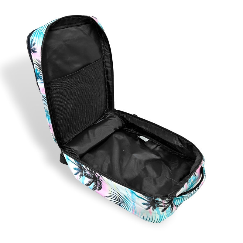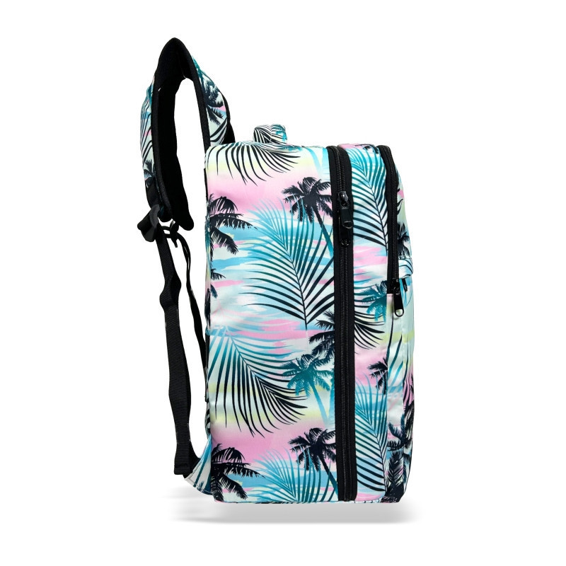 Pálmafa mintás megjelenéssel készült kézipoggyász hátizsák, amely praktikus kialakításával ideális választás repülős utazásokhoz, városi kiruccanásokhoz és rövid hétvégi utakhoz. A vízlepergető anyag segít megóvni a táska tartalmát a mindennapi használat során, miközben a növényes minta friss, nyárias hangulatot ad az összképnek.A hátizsák mérete megfelel a WizzAir és a Ryanair ingyenes kézipoggyászra vonatkozó előírásainak, így külön díj nélkül felvihető a fedélzetre, és kényelmesen elfér az előtted lévő ülés alatt. Az egykamrás belső kialakítás átlátható pakolást biztosít, az elülső cipzáras zseb pedig gyors hozzáférést nyújt az apróbb tárgyak számára.Könnyű kialakítása lehetővé teszi, hogy több holmit vihess magaddal anélkül, hogy túllépnéd a légitársaságok súlyhatárait. A hátoldalon elhelyezett bőröndre rögzíthető pánt megkönnyíti az utazást, az állítható vállpántok pedig kényelmes viseletet biztosítanak hosszabb használat során is.Méretadatok• Magasság: 40 cm• Szélesség: 25 cm• Mélység: 20 cm• Fogantyú magassága: 8 cm• Heveder maximális hossza: 80 cmKialakítás• Vízlepergető anyag• Egy tágas, cipzáras fő rekesz• Elülső cipzáras zseb apróbb tárgyak számára• Bőröndhöz rögzíthető hátsó pánt• Könnyű kivitel, kb. 300 g• Állítható, kényelmes vállpántokA Zellia kézipoggyász hátizsák jó választás mindazok számára, akik egy jól pakolható, utazásbarát és kényelmes hátizsákot keresnek, egyedi pálmafa mintával.