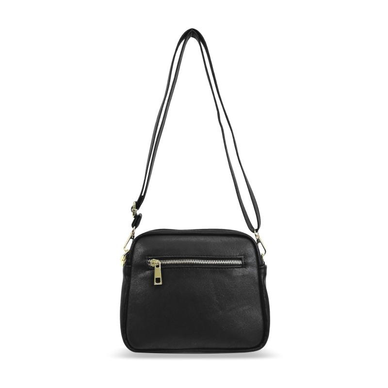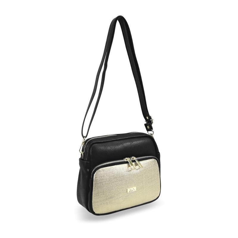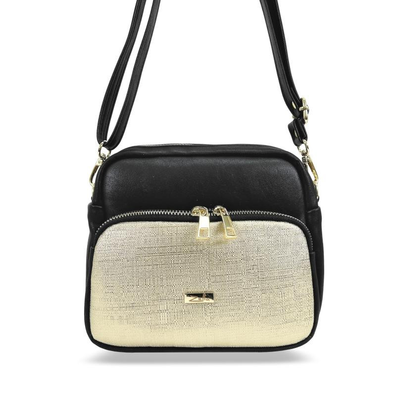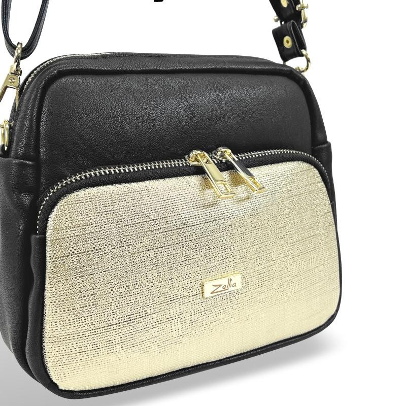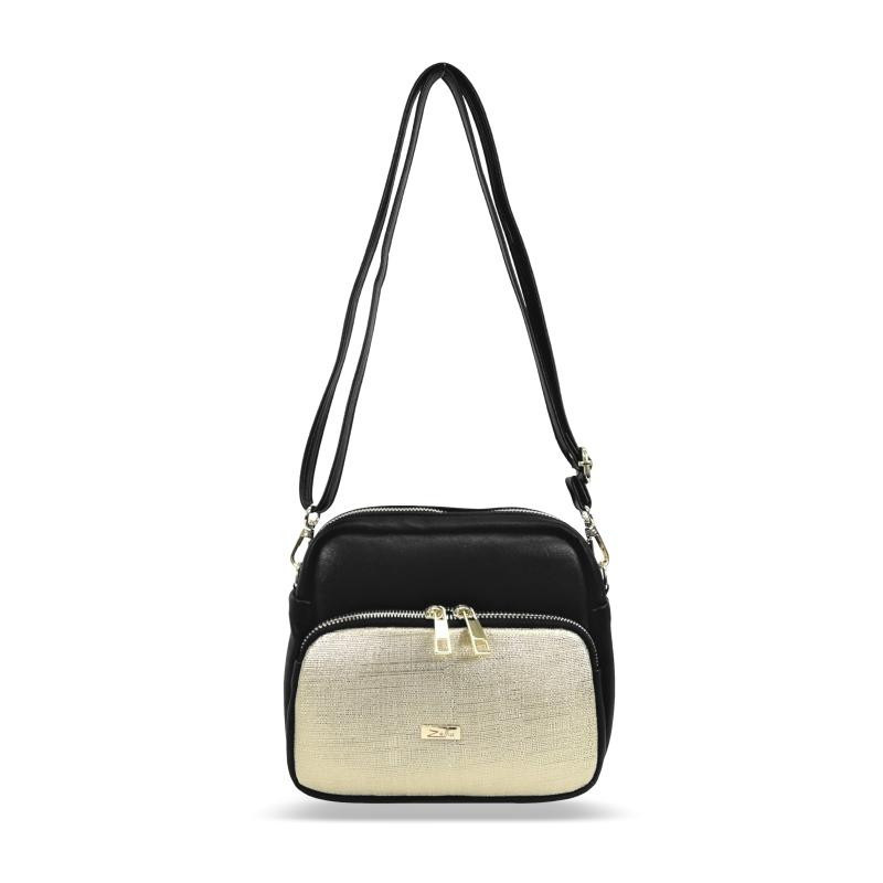 A Zellia Zvn24010 fekete-arany női oldaltáska különleges megjelenésével stílusos kiegészítője lehet bármely hétköznapi vagy alkalmi összeállításnak. A fekete alapszínt elegánsan egészíti ki az arany elülső zseb, amely kifinomult fényével finom kontrasztot teremt.