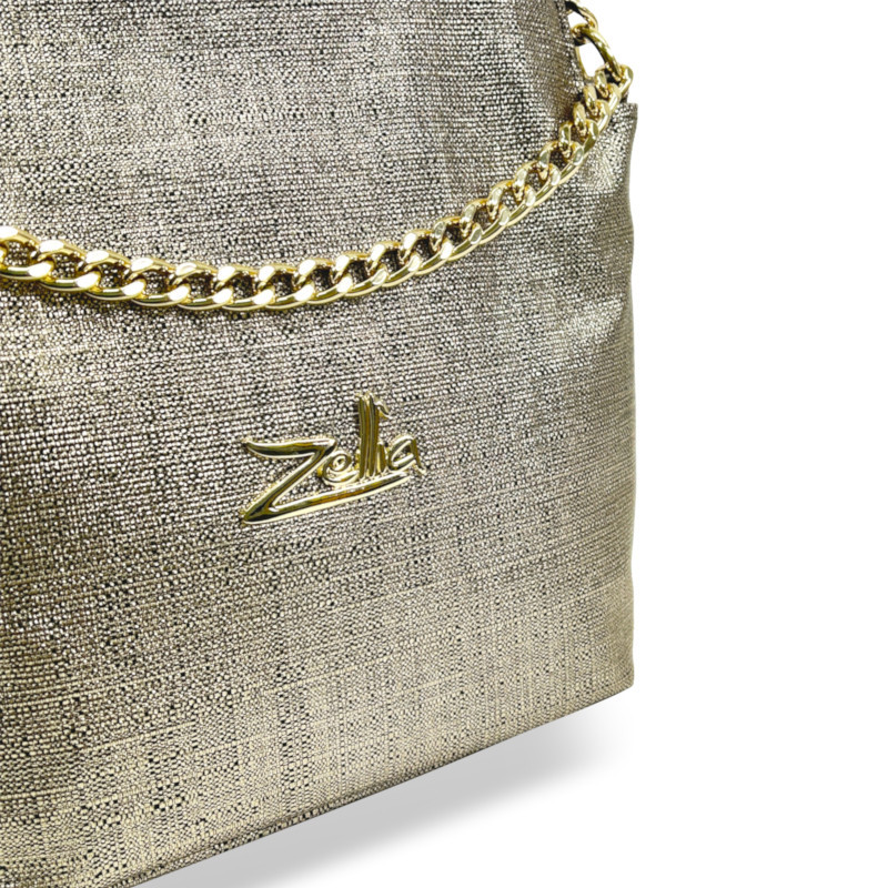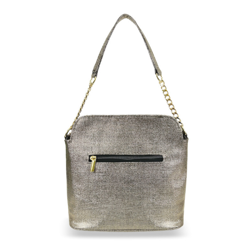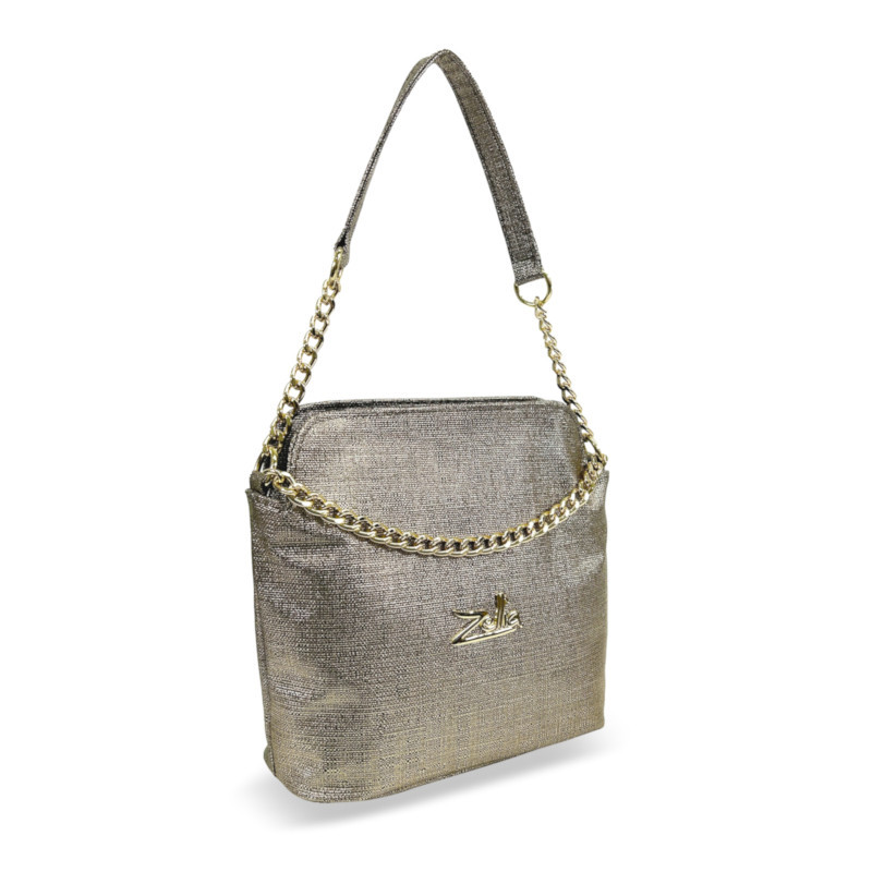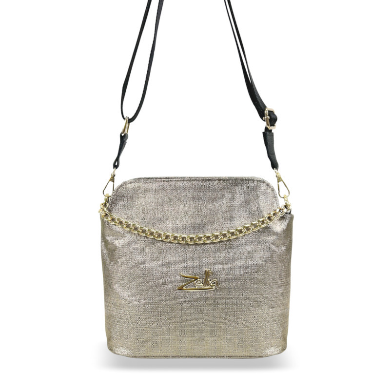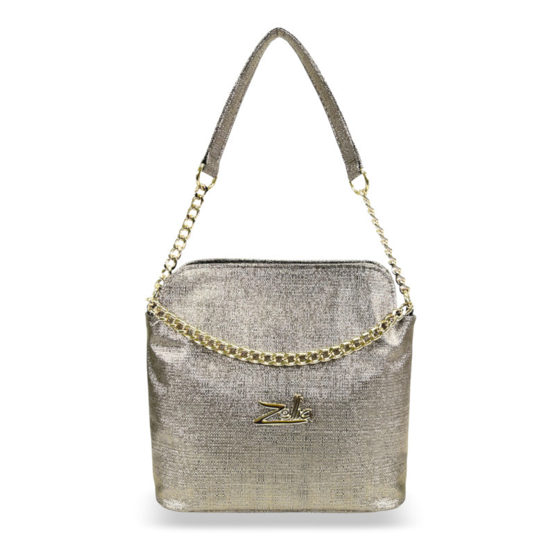 A Zellia 24043 bronz női oldaltáska a kifinomult részletek és a modern stílus tökéletes harmóniáját nyújtja. A texturált, enyhén csillogó felület és az arany láncelemek elegáns, mégis fiatalos megjelenést biztosítanak, így ideális választás a mindennapokra vagy különleges alkalmakra.