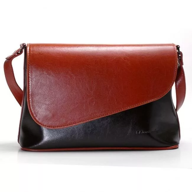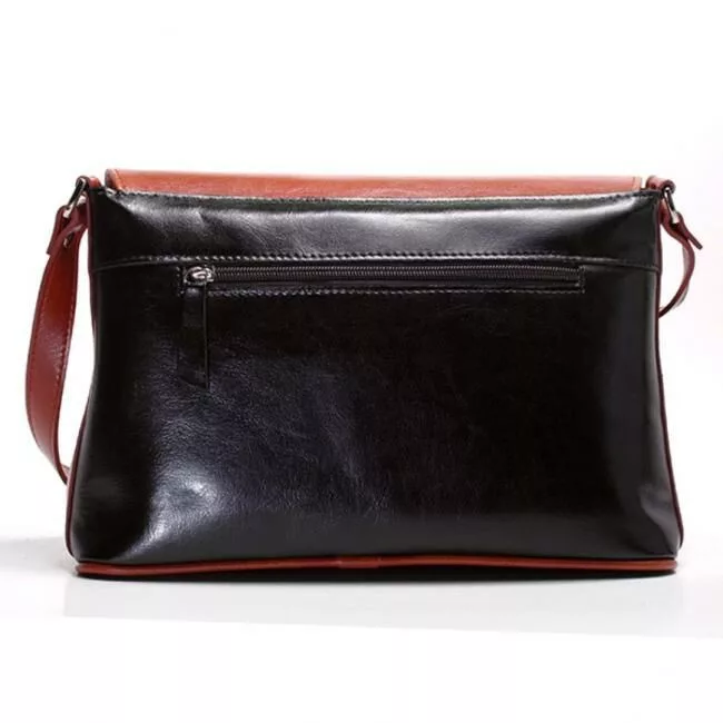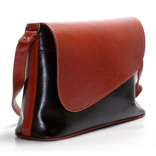 Johanna fekete-konyak női bőr válltáska. Két rekeszes női válltáska aszimmetrikus fedéllel. Belül bélészseb és telefonzseb található. Állítható vállszíja 100-130 cm. A női bőr válltáska anyaga felületkezelt, kiváló minőségű selyemfényű olasz marhabőr. A Johanna fekete-konyak női bőr válltáska mérete: 22 x 33 x 9 cm. Magyarországon, Pécsett, magyar munkások keze által, olasz bőrből készült minőségi termék. Ha beruházol egy ilyen kiegészítőre, akkor nem kell hónapokban gondolkodnod, hosszú években tervezhetsz.