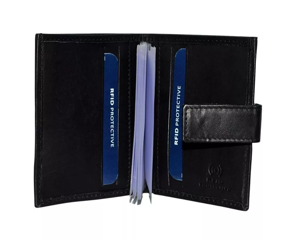 Marhabőrből készült kártyatartó, mely nem csak egyszerű és letisztult megjelenésének köszönheti kedveltségét, hanem kialakításának is. Ugyanis 16 db kártyatartóval rendelkezik, melyen felül 1 db papírpénztartó rekesz is elhelyezésre került benne.Ennek okán akár pénztárcánk helyettesítője is lehet. Kis méretének köszönhetően egy kézitáskában is kényelmesen elfér.Átfogópántjának és RFID védelmének köszönhetően tulajdonosa nagyobb biztonságban érezheti kártyáit, értékeit.Mérete: 8 × 10 cm
