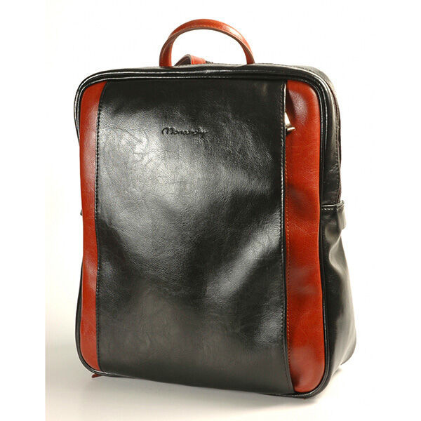 Rubina fekete-konyak színű női bőr hátizsák. A bőrtáska 1 nagy cipzáras rekeszből áll. Előrészén, hátrészén és belül is egy-egy lapos, cipzáras zseb található. Tetején kézifogóval, alján fém lábakkal van ellátva. Bélése erős vászon. A Rubina női bőr hátizsák anyaga felületkezelt, kiváló minőségű selyemfényű olasz marhabőr. A bőr hátizsák mérete: 29 x 35 x 12 cm Ez a női bőr táska biztos, hogy minden helyzetben megállja a helyét, mindig elegáns megjelenést kölcsönöz és hűségesen elkísér, bárhova is menjél. Ha beruházol egy ilyen kiegészítőre, akkor nem kell hónapokban gondolkodnod, hosszú években tervezhetsz, és köztudott, hogy a bőr táska sosem megy ki a divatból.