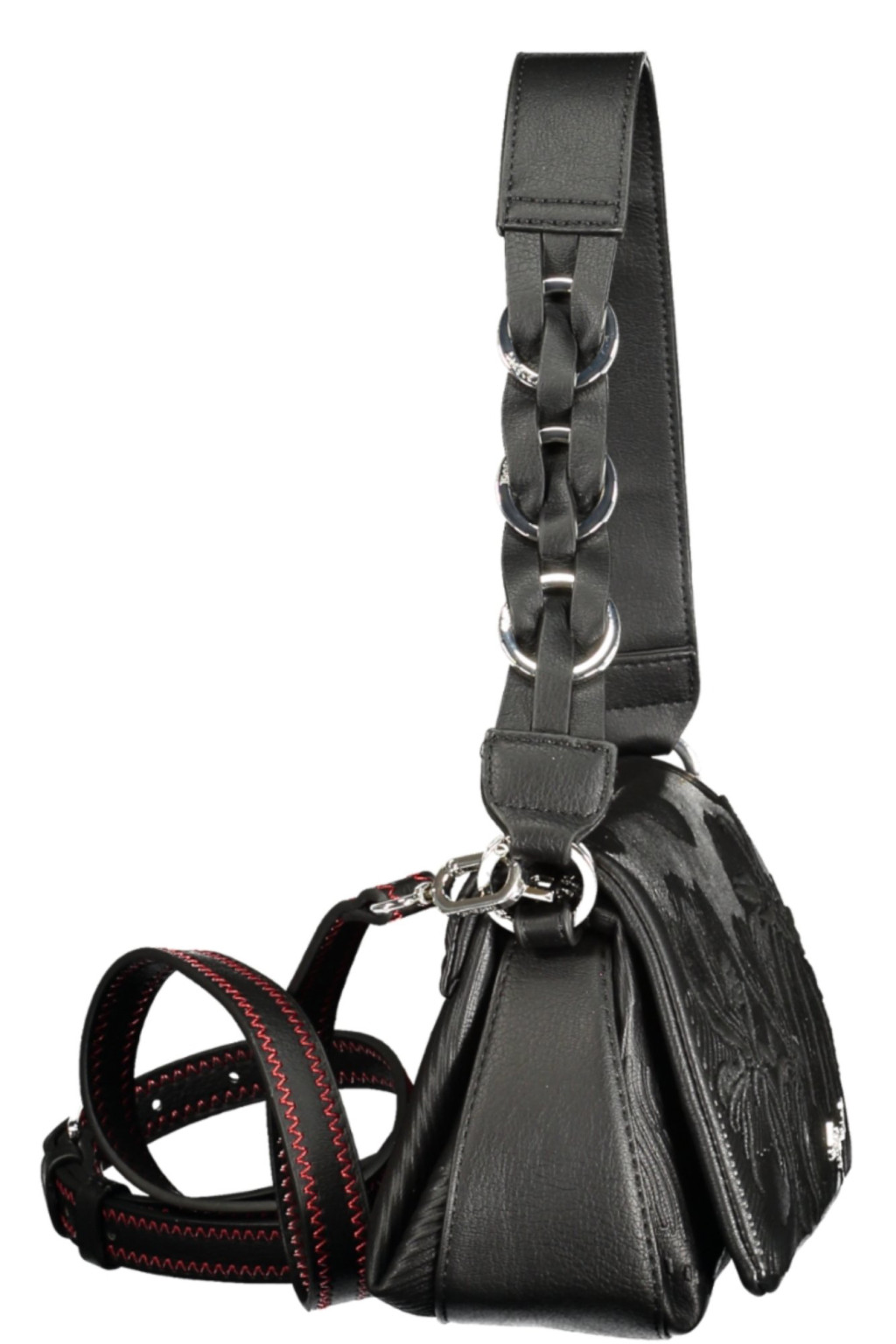 A Desigual fekete válltáska elegáns, mégis karakteres megjelenésével tökéletes választás a stílusos mindennapokra. A Desigual márkára jellemző a kreatív, művészi design és az egyedi részletek alkalmazása, amely ebben a modellben a kontrasztos elemekben és a modern formavilágban jelenik meg. A fekete szín időtálló és kifinomult hatást kelt, a feng shui szerint az erőt, védelmet és stabilitást szimbolizálja.