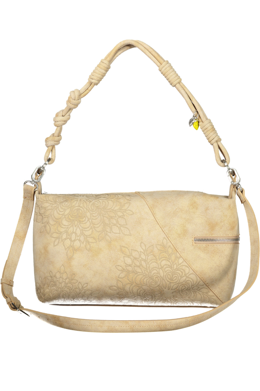 A Desigual bézs válltáska kifinomult, természetes megjelenésével és egyedi részleteivel tökéletes választás a mindennapi eleganciához. A Desigual márkára jellemző a kreatív, művészi design és a különleges textúrák használata, amely ebben a modellben a finoman kidolgozott mintákban és a karakteres pántkialakításban jelenik meg. A bézs árnyalat letisztult és harmonikus hatást kelt, a feng shui szerint a nyugalmat, egyensúlyt és természetességet erősíti.