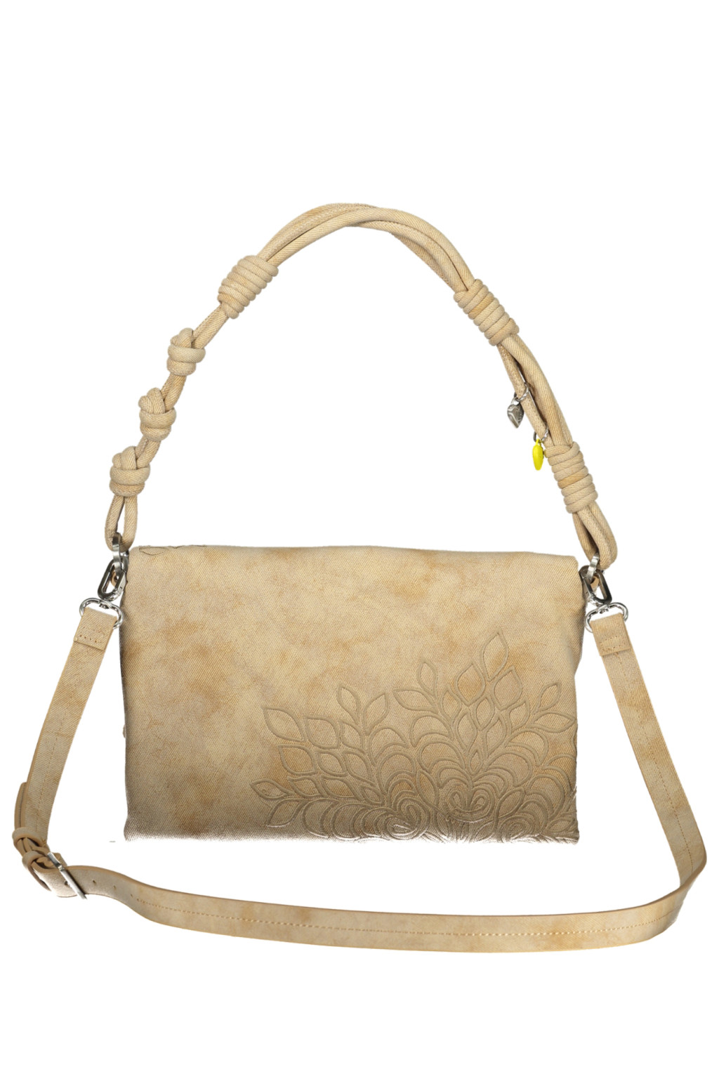 Külső kialakítás• Növénymintás, részletgazdag felület• Lehajtható fedél elegáns megjelenéssel• Sodrott, csomózott vállpánt egyedi stílusjegyként• Két külső zseb a praktikus tárolásért• Kidolgozott részletek és diszkrét márkajelzés