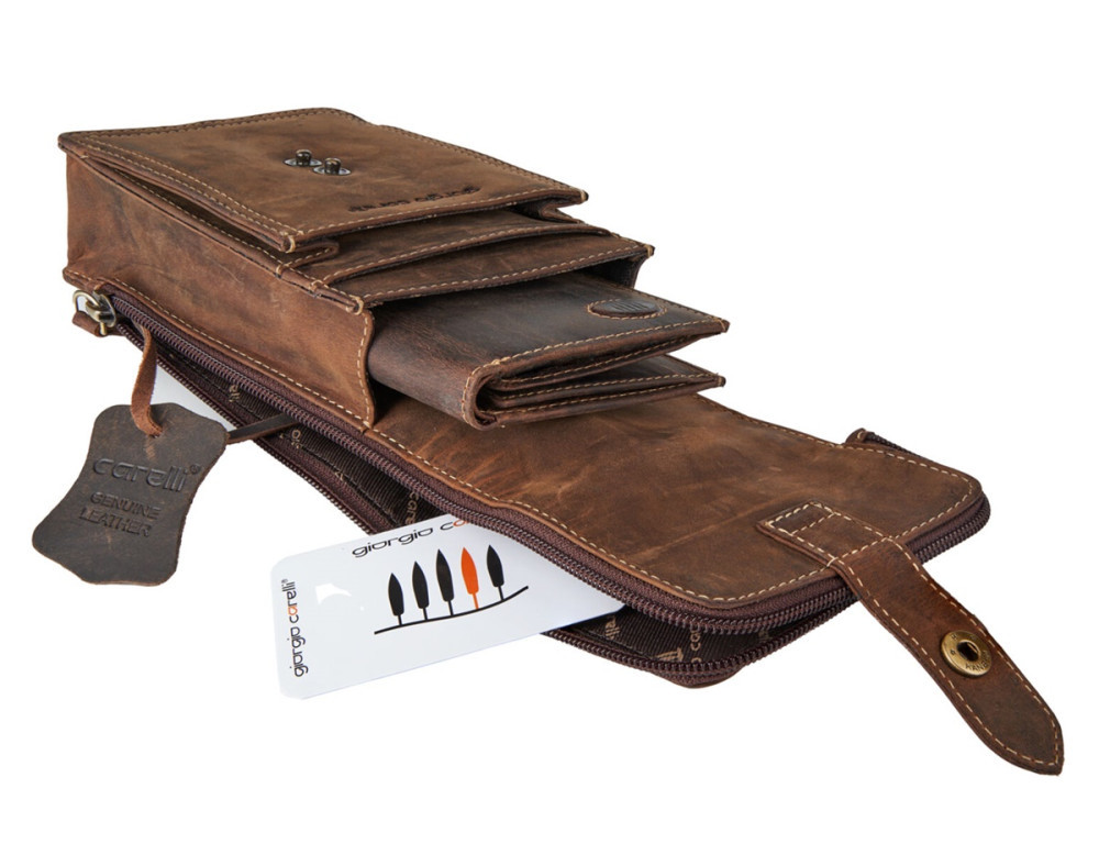 Giorgio Carelli pull-up koptatott hatású sportos bőr övtáska, marhabőrből.