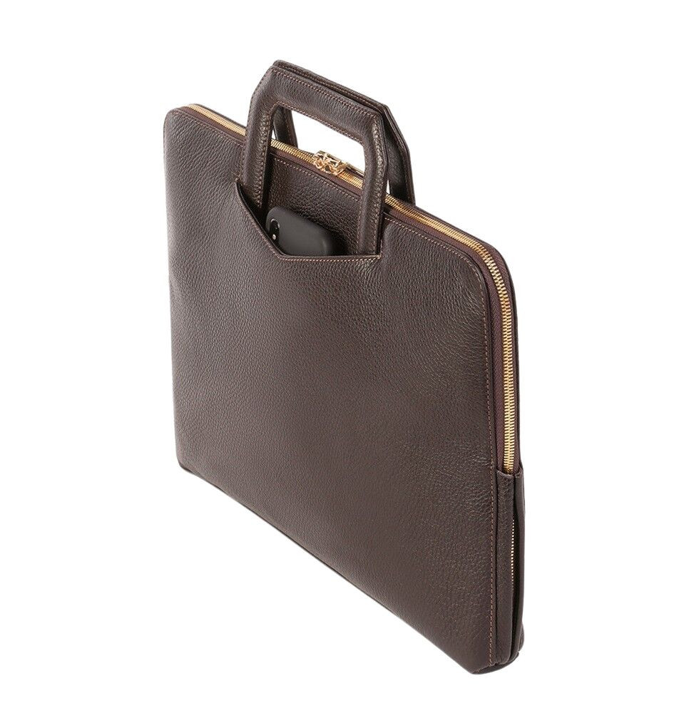 Különlegessége, hogy bőr fogói visszacsúsztathatóak, így a keskeny design miatt könnyedén hónunk alá csapható.