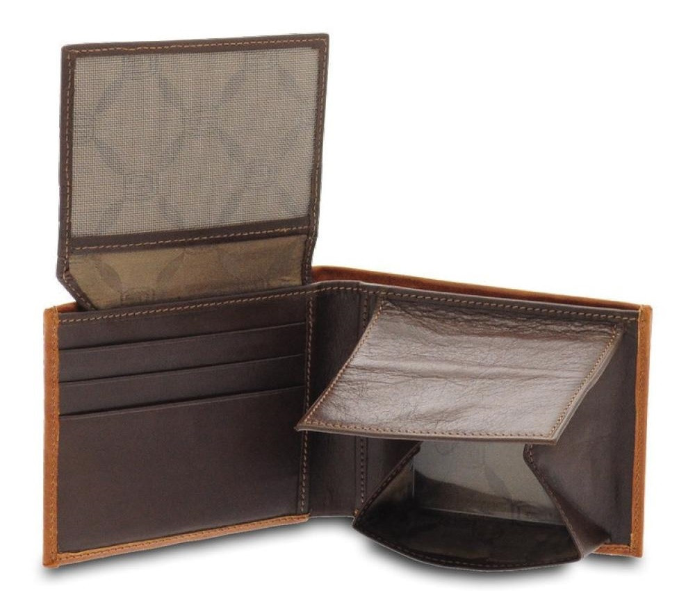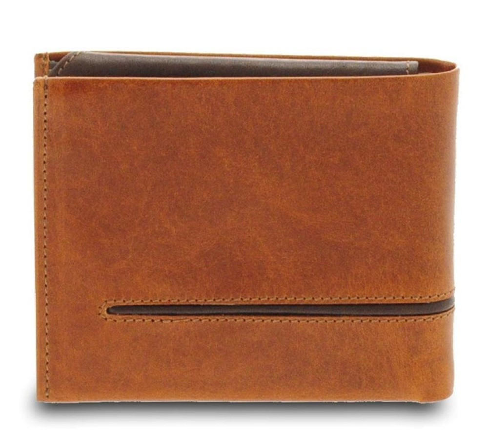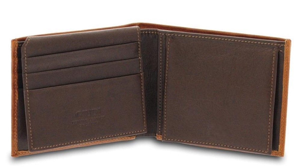 Giudi Newcastle konyak külső és sötétbarna belső színnel kombinált férfi bőr pénztárca és irattartó.
