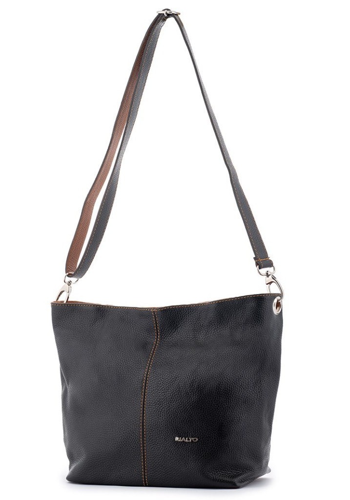 A Rialto sötétkék-barna női bőr válltáska az olasz elegancia és a praktikus kialakítás tökéletes kombinációja. Letisztult, klasszikus formavilágát a különleges barna bőrbetétek és a díszítő barna cérnavarrás teszik igazán egyedivé, kifinomult kontrasztot alkotva a sötétkék alapszínnel. Kiváló minőségű valódi bőrből készült, amely hosszú távú tartósságot és elegáns megjelenést biztosít.