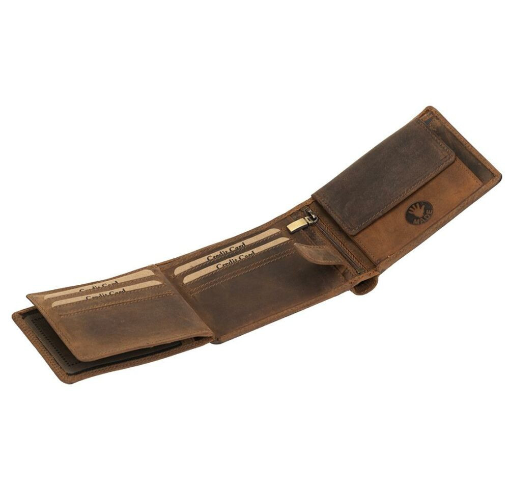 Ez a bőr pénztárca kifejezetten egy horgászoknak szánt darab, amely pull-up típusú koptatott hatású vékony marhabőrből készült.
